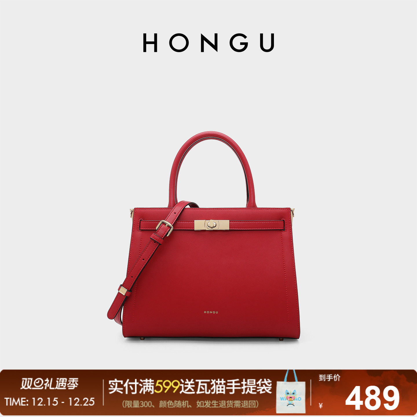 红谷包包新款高级感牛皮单肩手提包通勤大气斜挎手拎包女士妈妈包