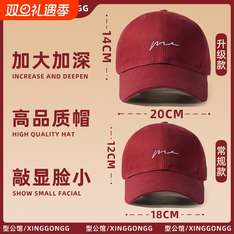 酒红色大头围帽子棒球帽大脸显脸小宽帽檐女加大加深顶红色鸭舌帽