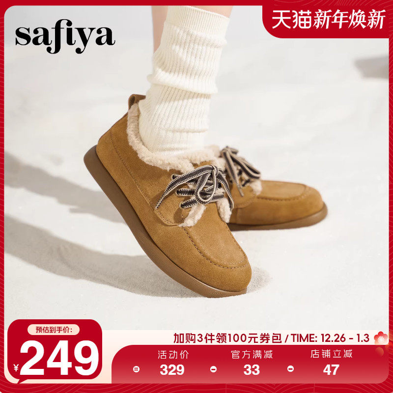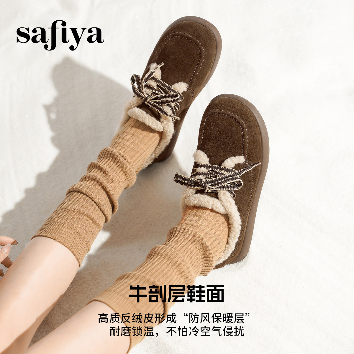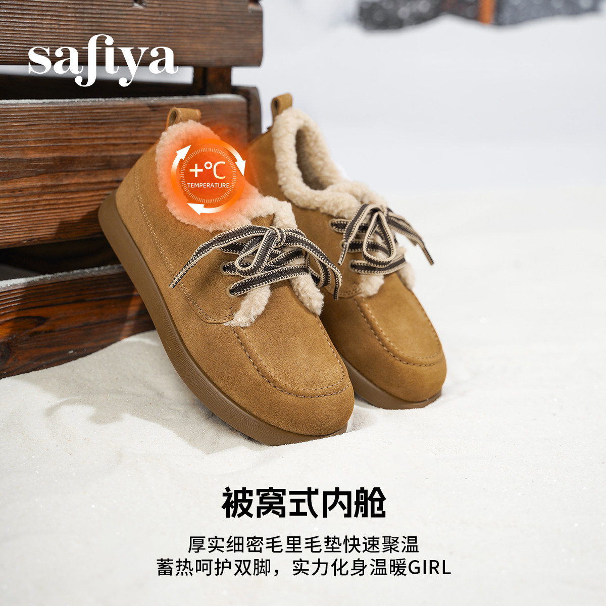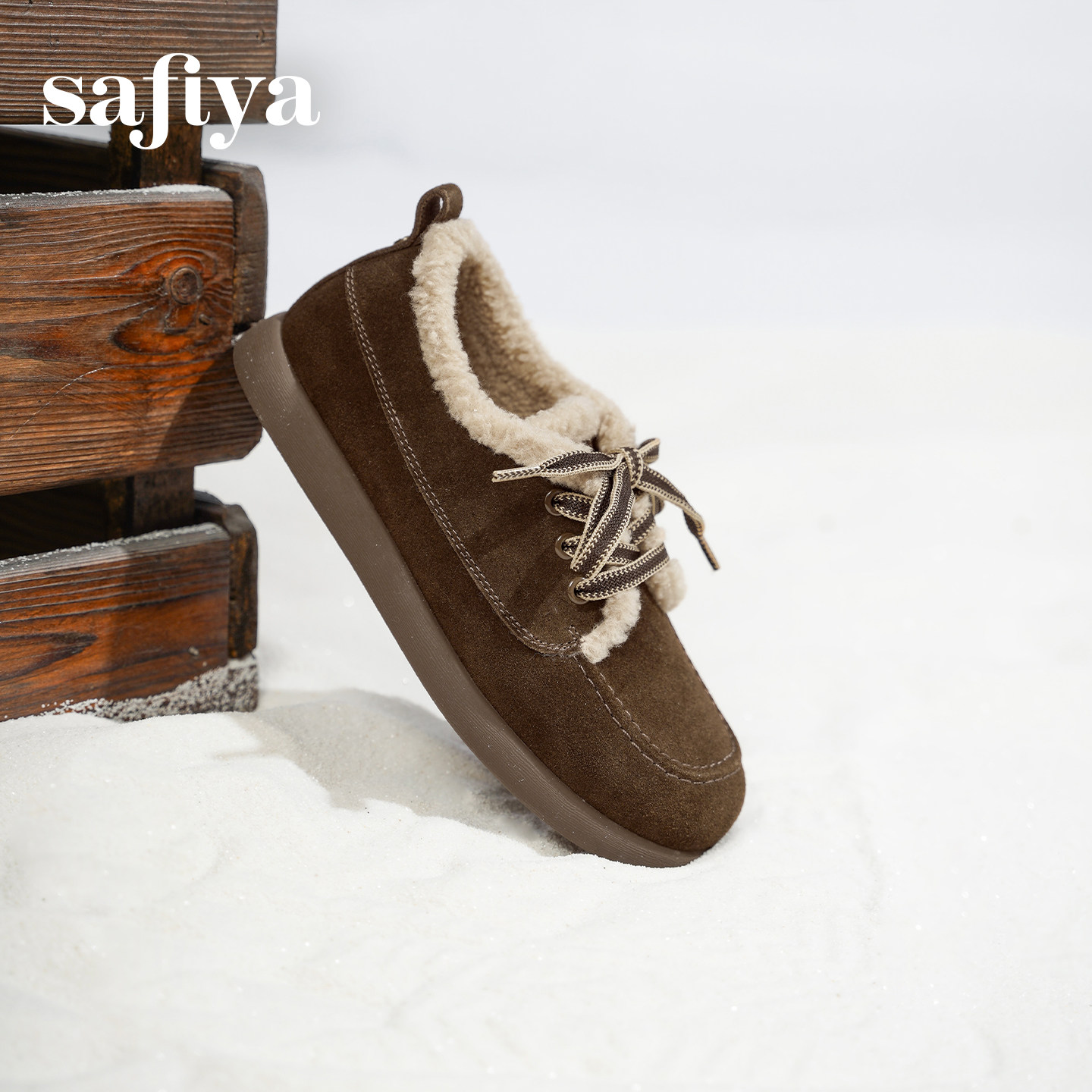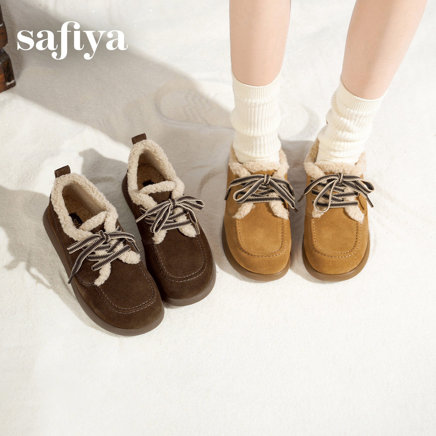 Safiya/索菲娅2025冬季新品复古加绒系带平底圆头百搭雪地毛毛鞋