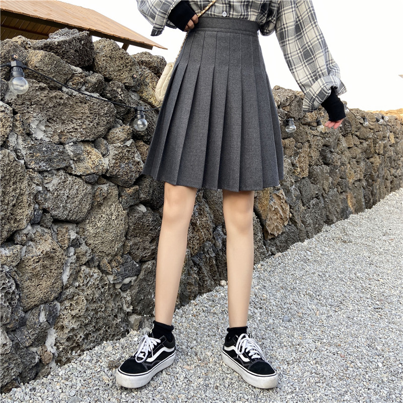MJ STYLE灰色百褶西装裙女秋冬半身裙高腰休闲大摆a字过膝中长裙