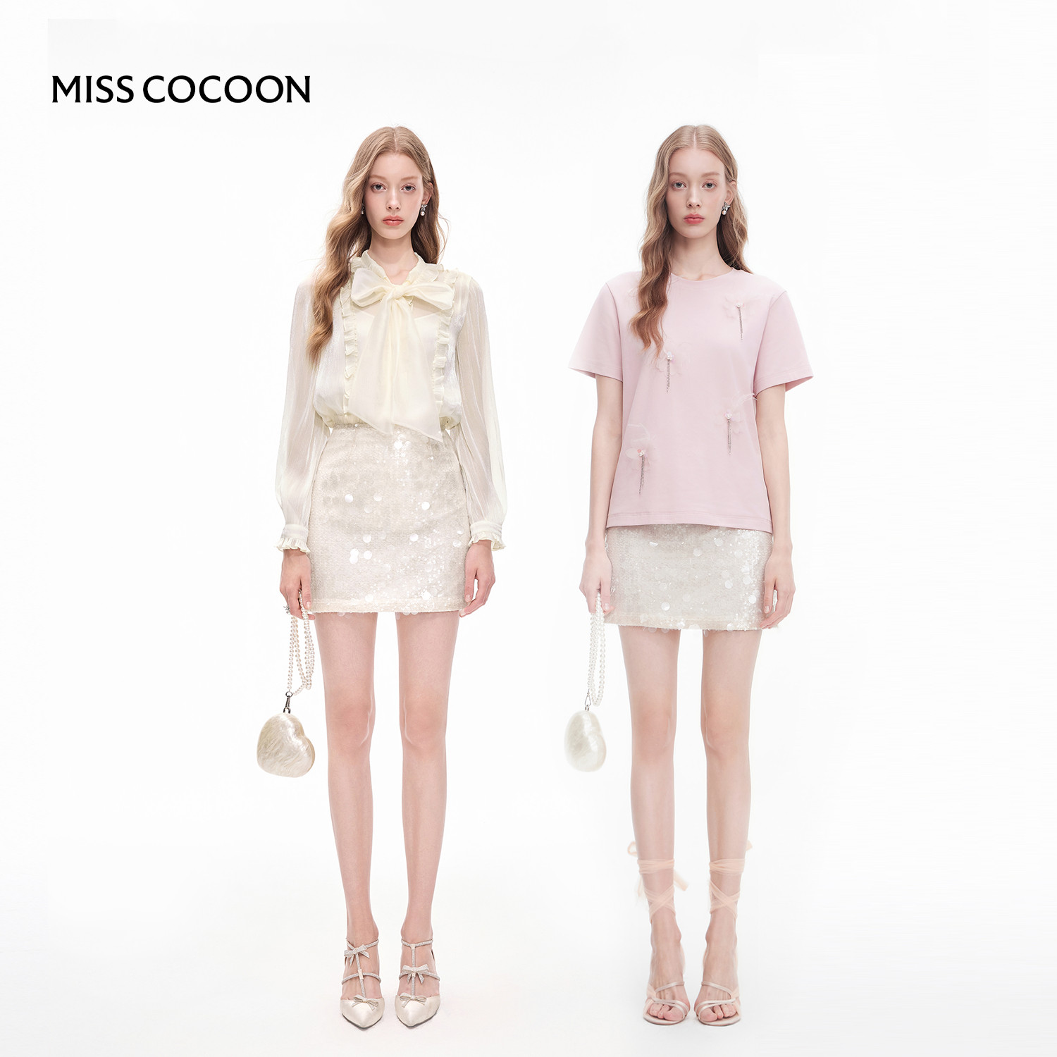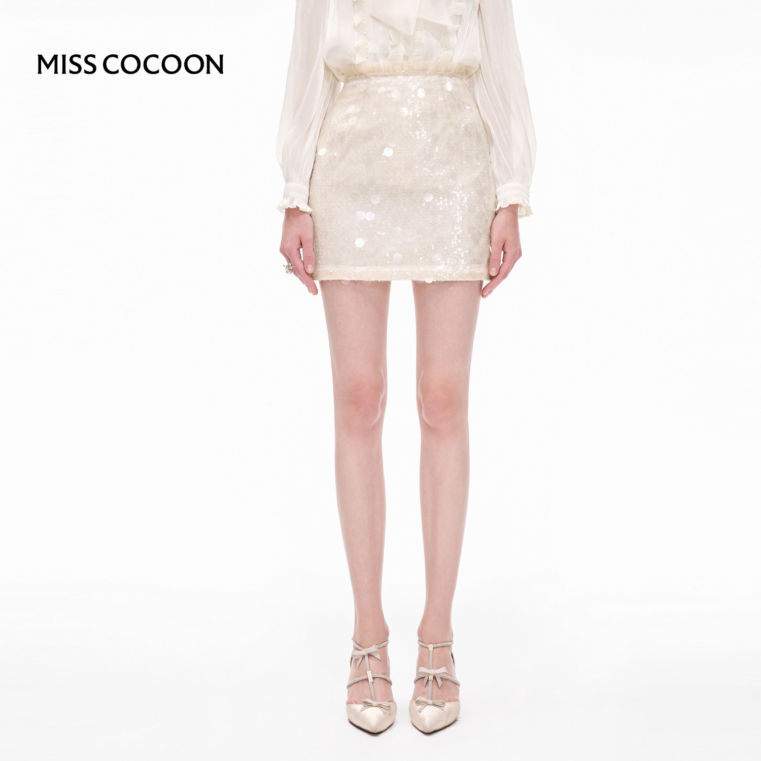 MISSCOCOON可可尼卡其色亮片短裙女款2025秋季新款复古A字半身裙