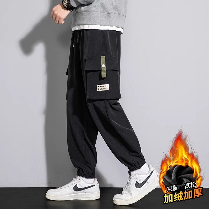 加绒加厚青少年裤子男款秋冬季2025新款工装裤大码休闲运动束脚裤