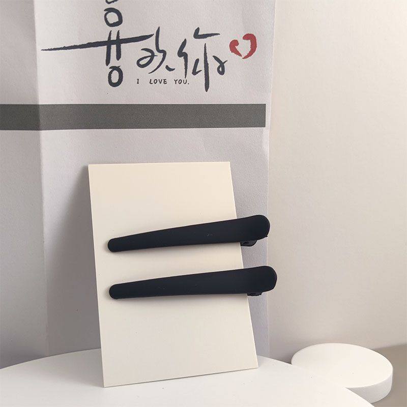 少女小金属刘海碎发一字鸭嘴造型侧边美妆发夹女发卡黑色夹子发饰