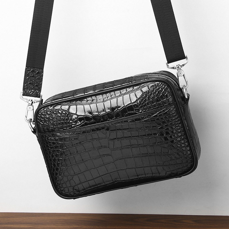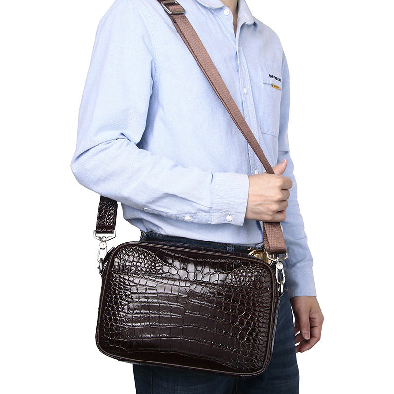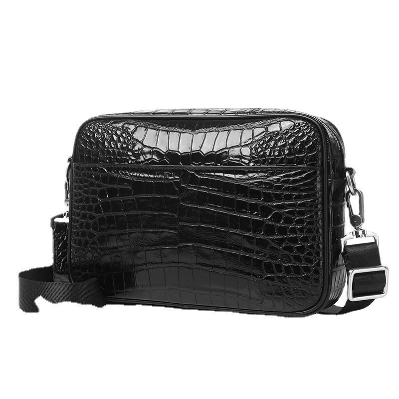 新款鳄鱼肚纹男士单肩斜跨包真皮邮差包横款牛皮男包斜挎头层