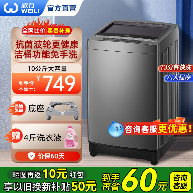 威力9/10/12公斤大容量全自动波轮洗衣机快洗桶自洁家用抗菌波轮
