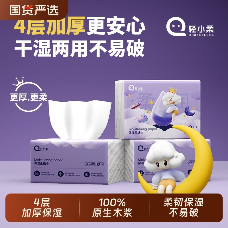 轻小柔云柔巾600张加厚4层乳霜纸保湿柔纸巾婴儿亲肤家用抽纸巾
