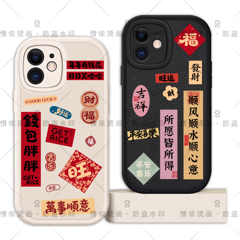 新年发财好运吉祥日进斗金贴画卡通转印贴国风贴纸防水水杯贴纸