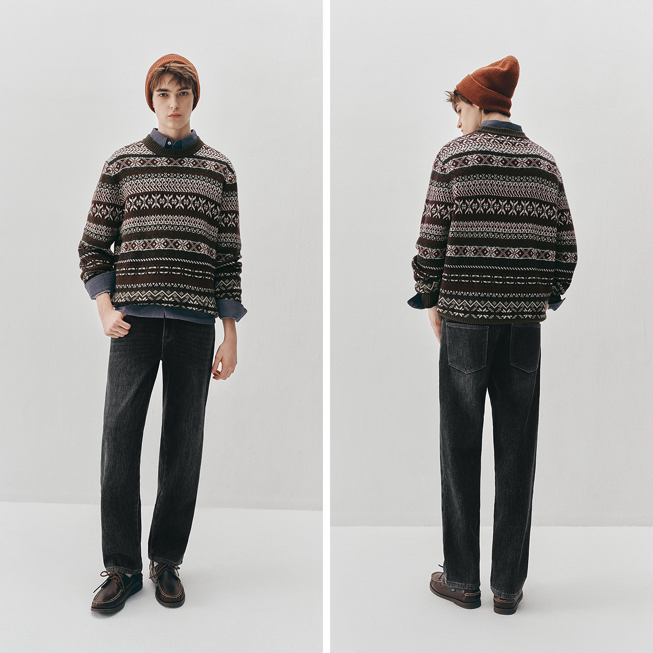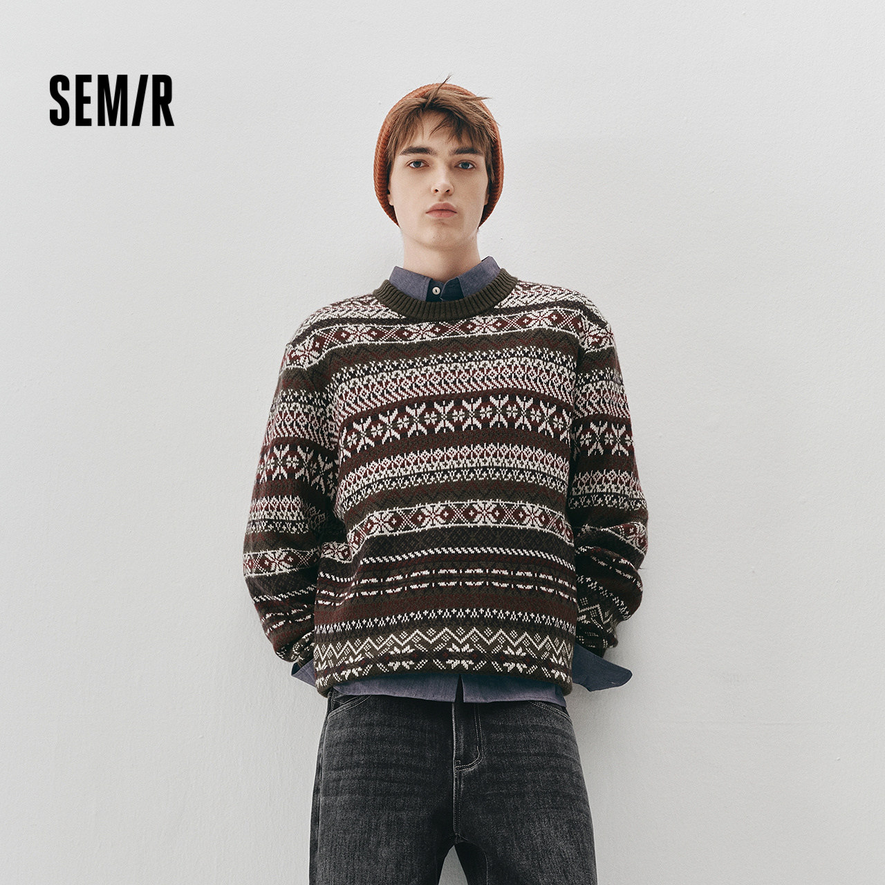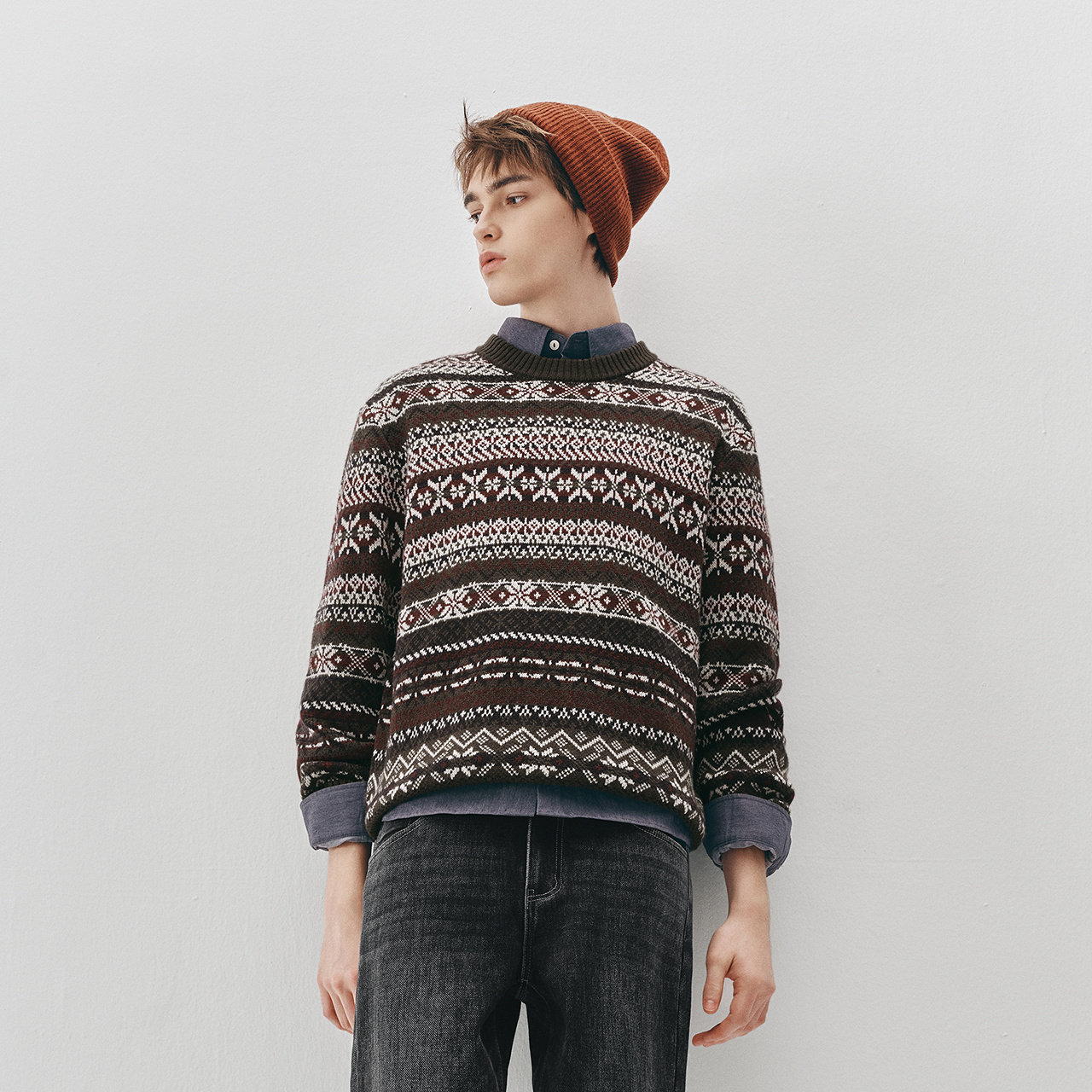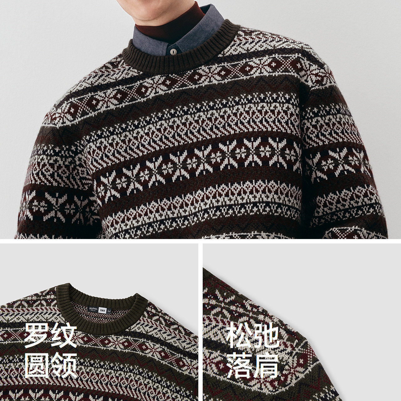 王安宇同款森马毛衫男费尔岛提花针织衫25冬季情侣复古毛衣幻彩纱