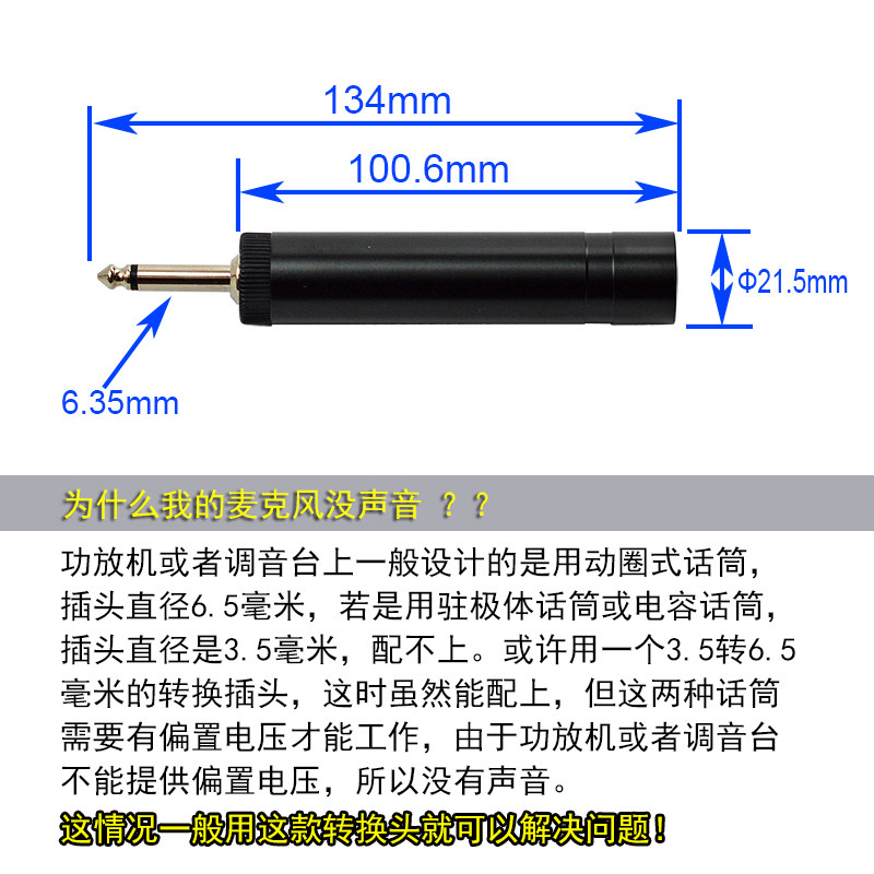 电容麦克风3.5转6.5转接头 二胡拾音器功放调音台话筒6.35转换头