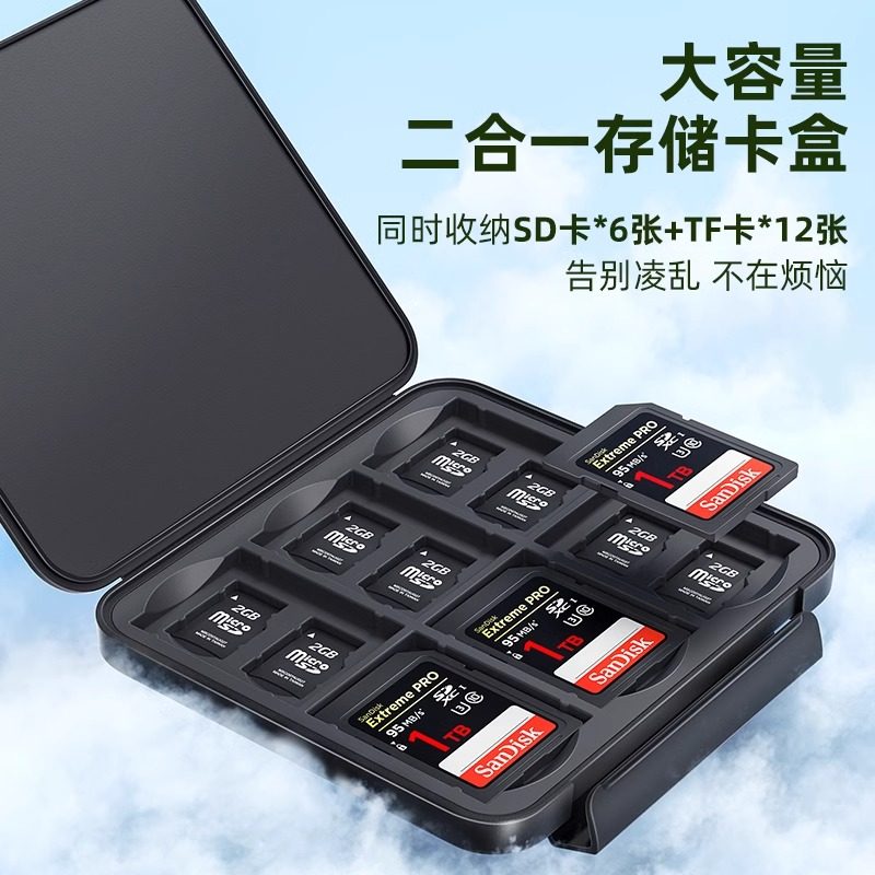 绿巨能内存sd卡收纳盒储存卡收纳包TF卡套存储卡记忆卡大容量保护盒防潮防尘相机配件闪存卡便携防摔防压硬壳