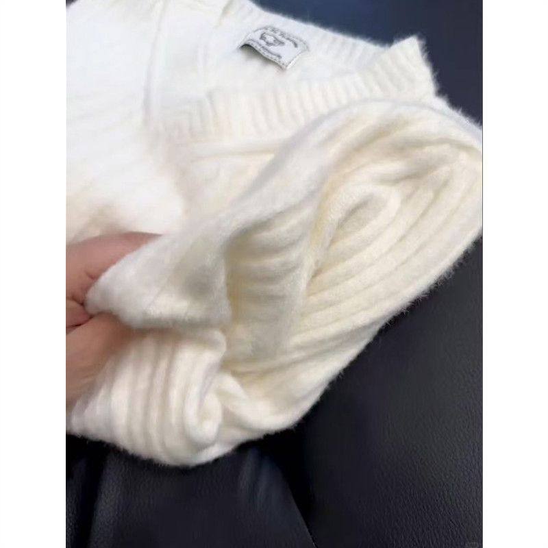 韩系慵懒风白色v领长袖针织毛衣女春秋冬高级感大码内搭打底上衣