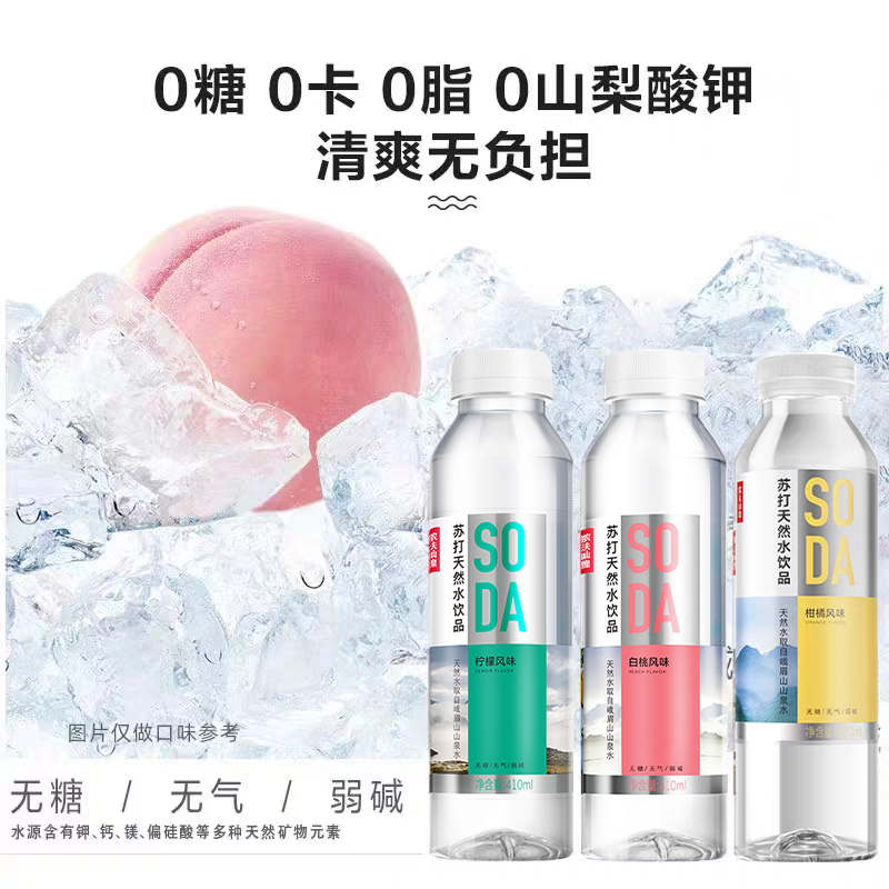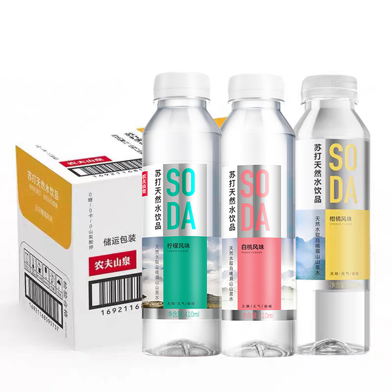 农夫山泉苏打水410ml*15瓶0糖0脂0卡柠檬白桃柑橘多种口味整箱发