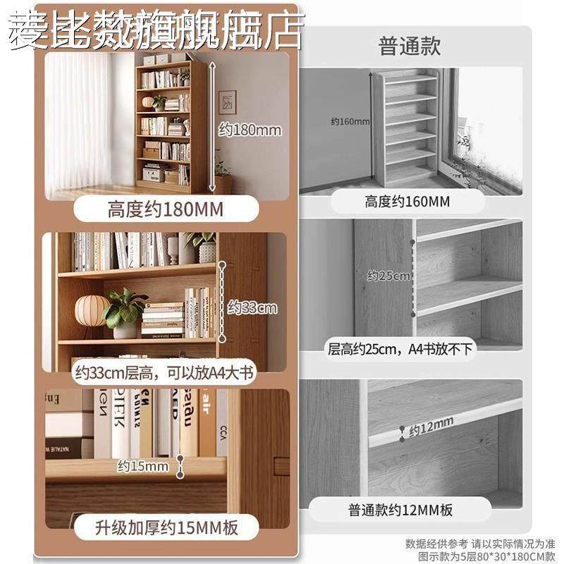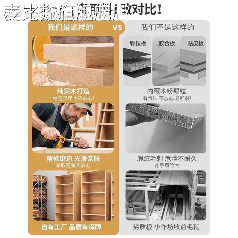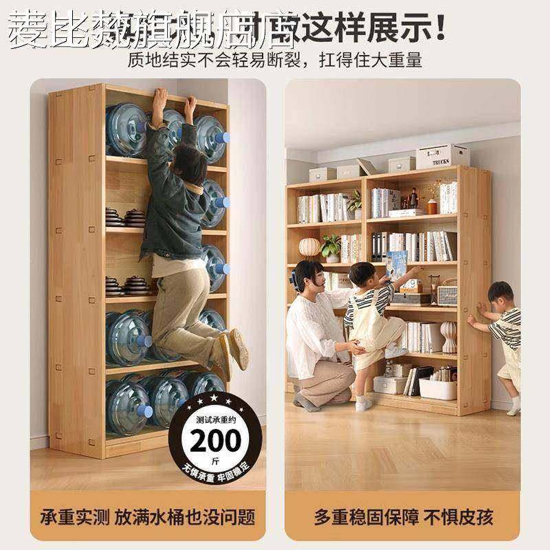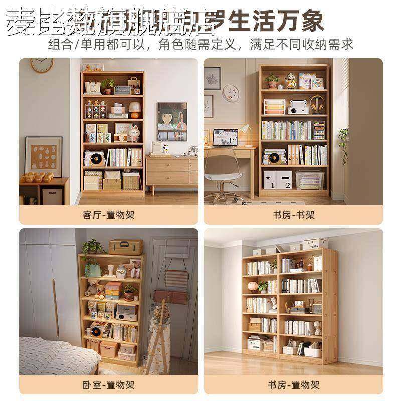 麦比梵实木书架一体靠墙落地多层置物柜家用儿童学生书柜客厅简易收纳柜床笠拉车