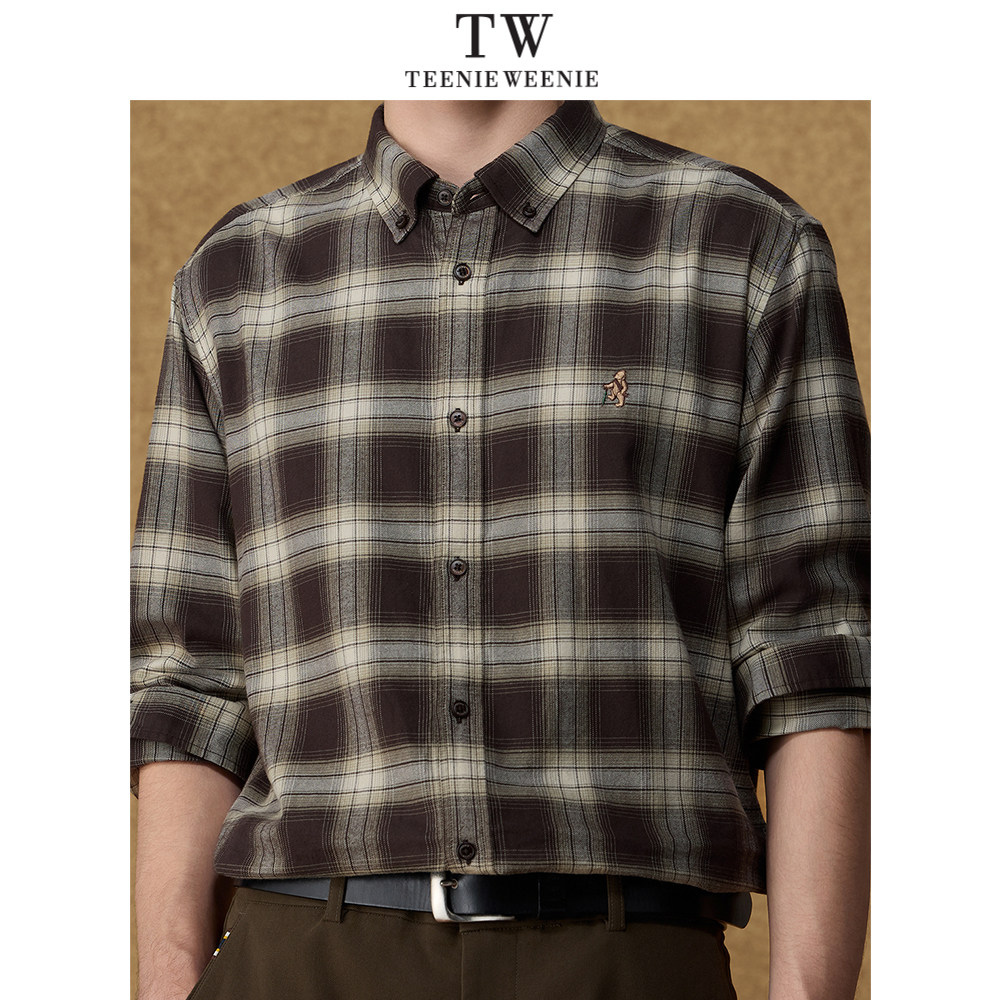 Teenie Weenie小熊男装刺绣复古美式休闲磨毛衬衫长袖新款上衣