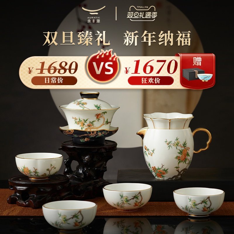 【爆款买赠】永丰源石榴家园8头9头12头茶具套装中式陶瓷茶壶茶杯