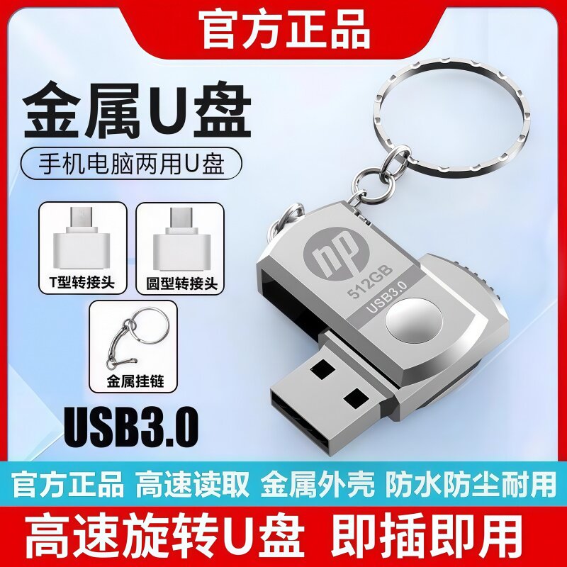 正品u盘512G旋转高速3.0大容量256g手机电脑两用128g金属车载32GB
