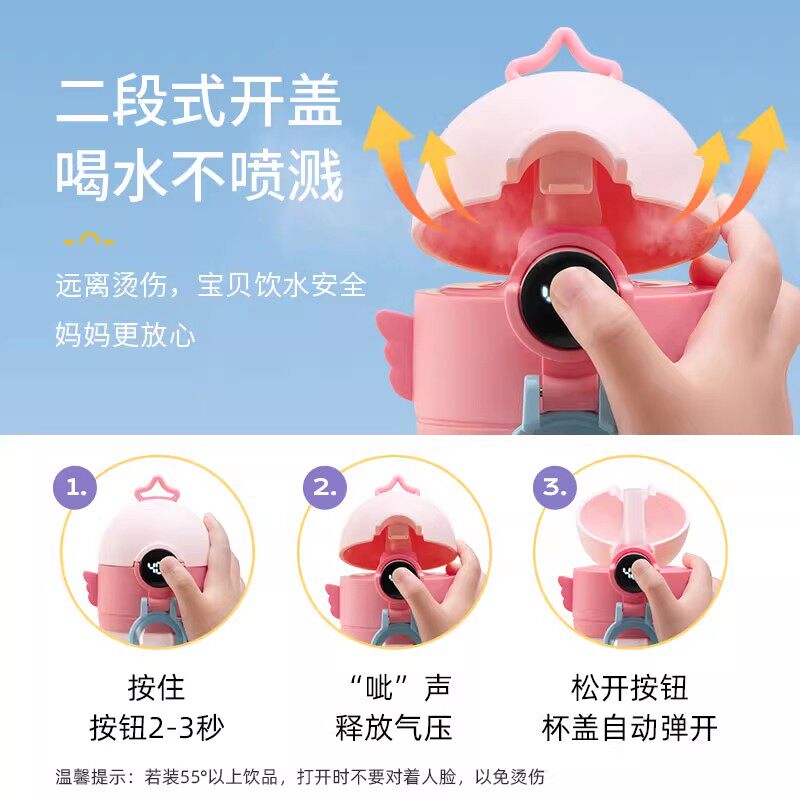 苏泊尔儿童保温杯学生上学专用智能显温幼儿园小学生不锈钢吸管杯