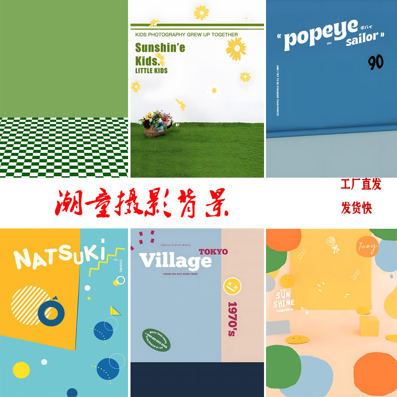 新款简洁时尚照相馆儿童摄影背景墙布影棚潮童写真拍照拍摄背景纸