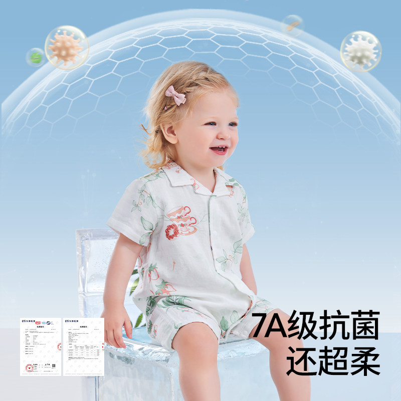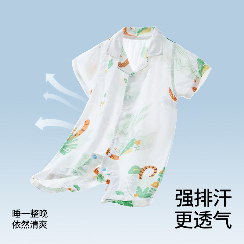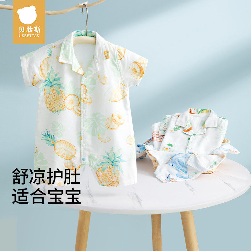 贝肽斯【凉荷】婴儿衣服夏季薄款男女宝宝连体衣短袖新生幼儿睡衣