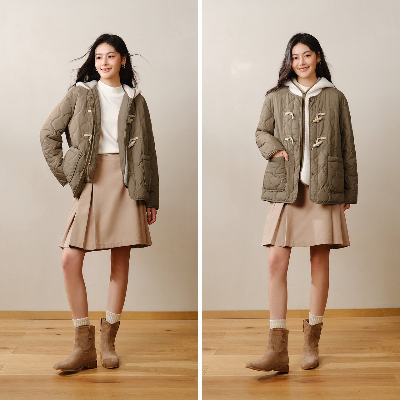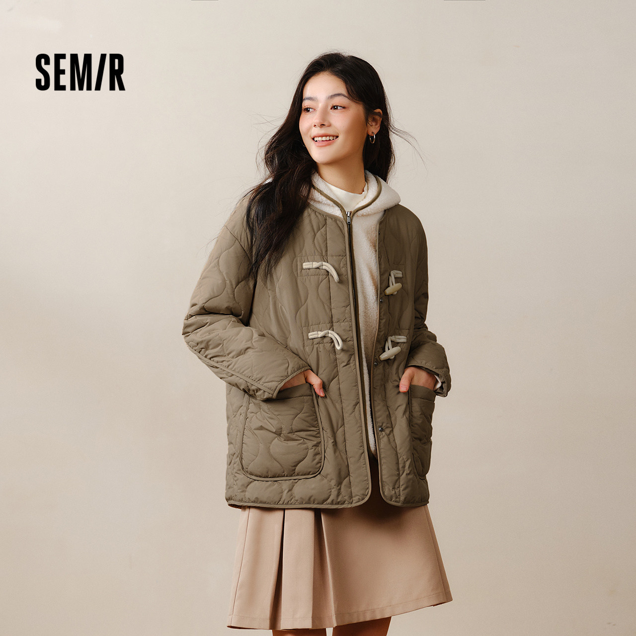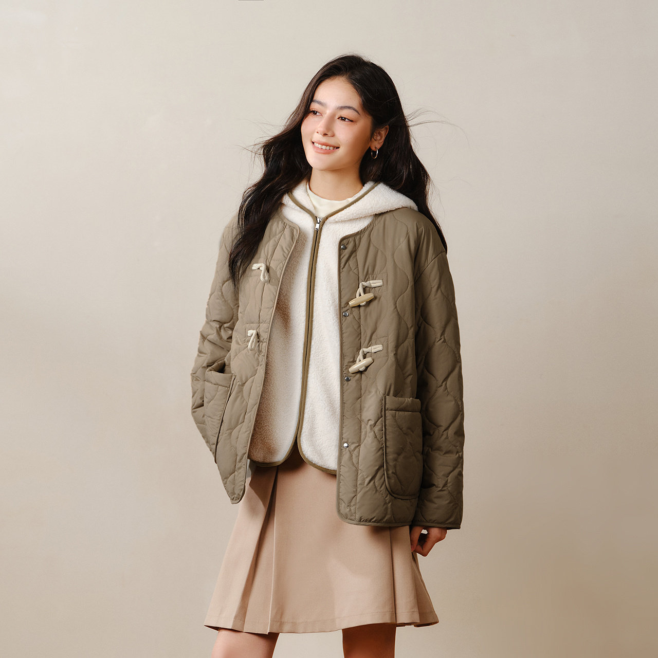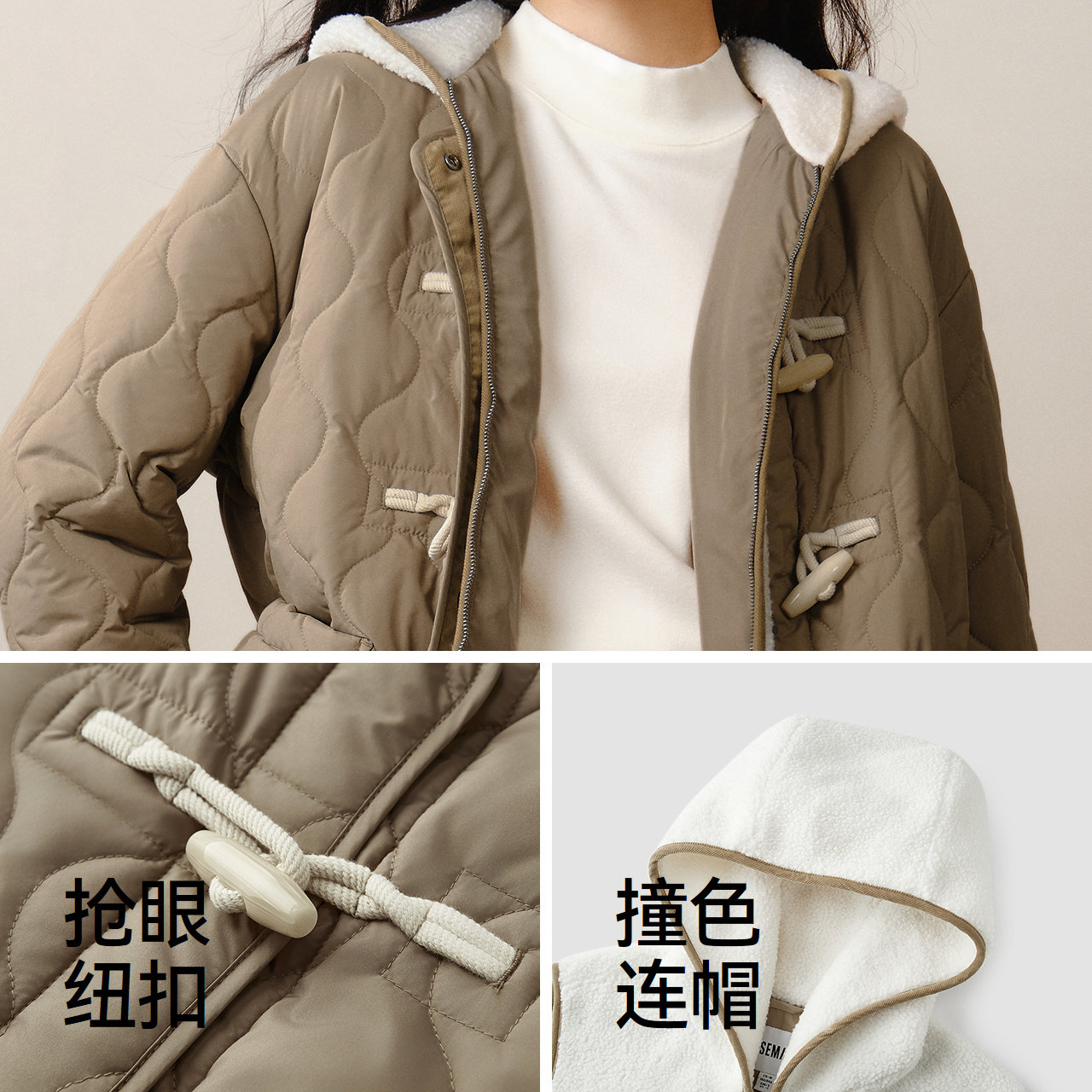 森马棉服女冬季仿羊羔毛马甲牛角扣防泼水宽松轻薄棉衣文艺两件套