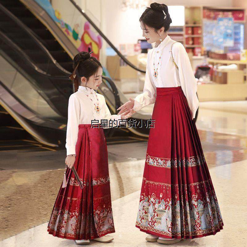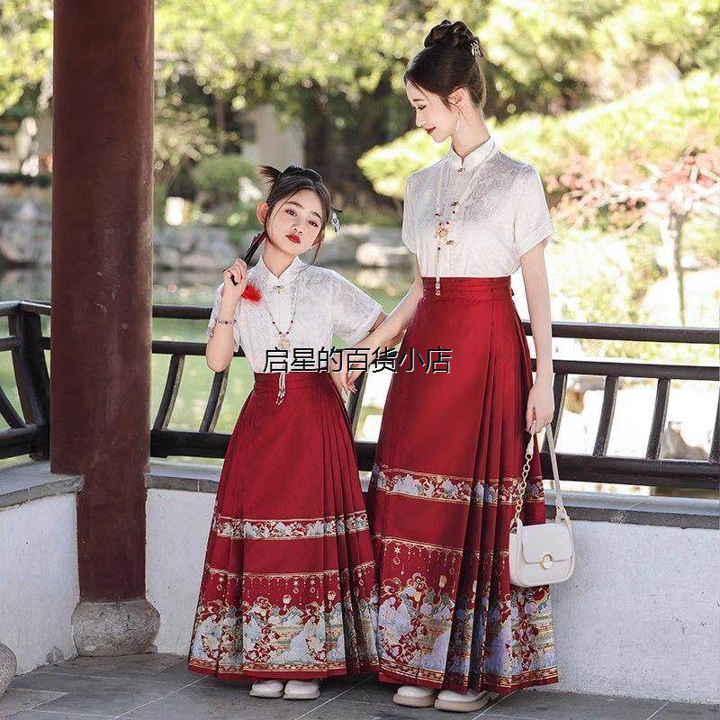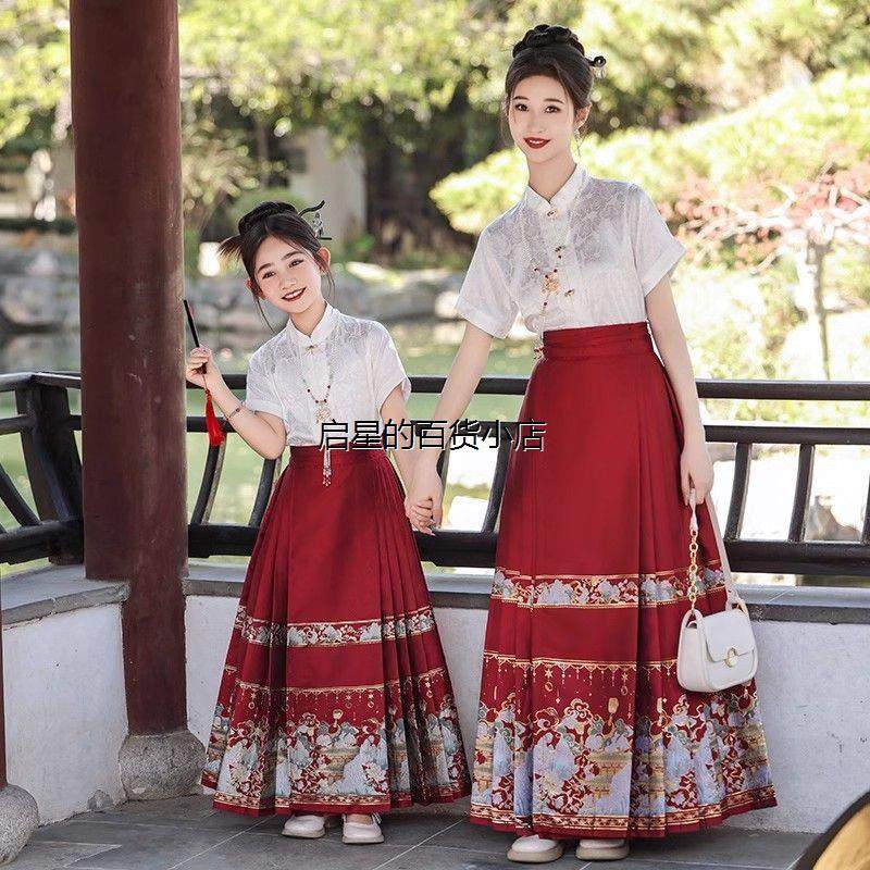 马面裙亲子装母女套装2025新款高端汉服女童国风儿童古风唐装夏季