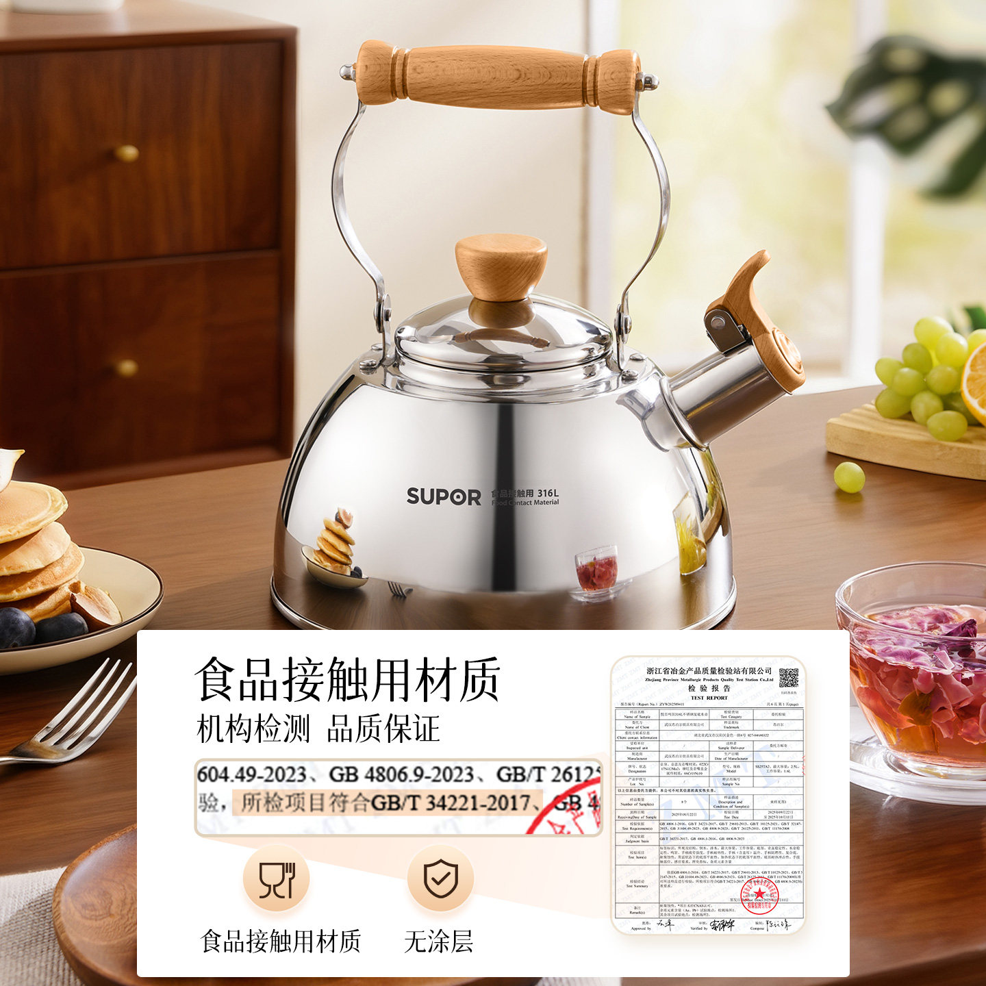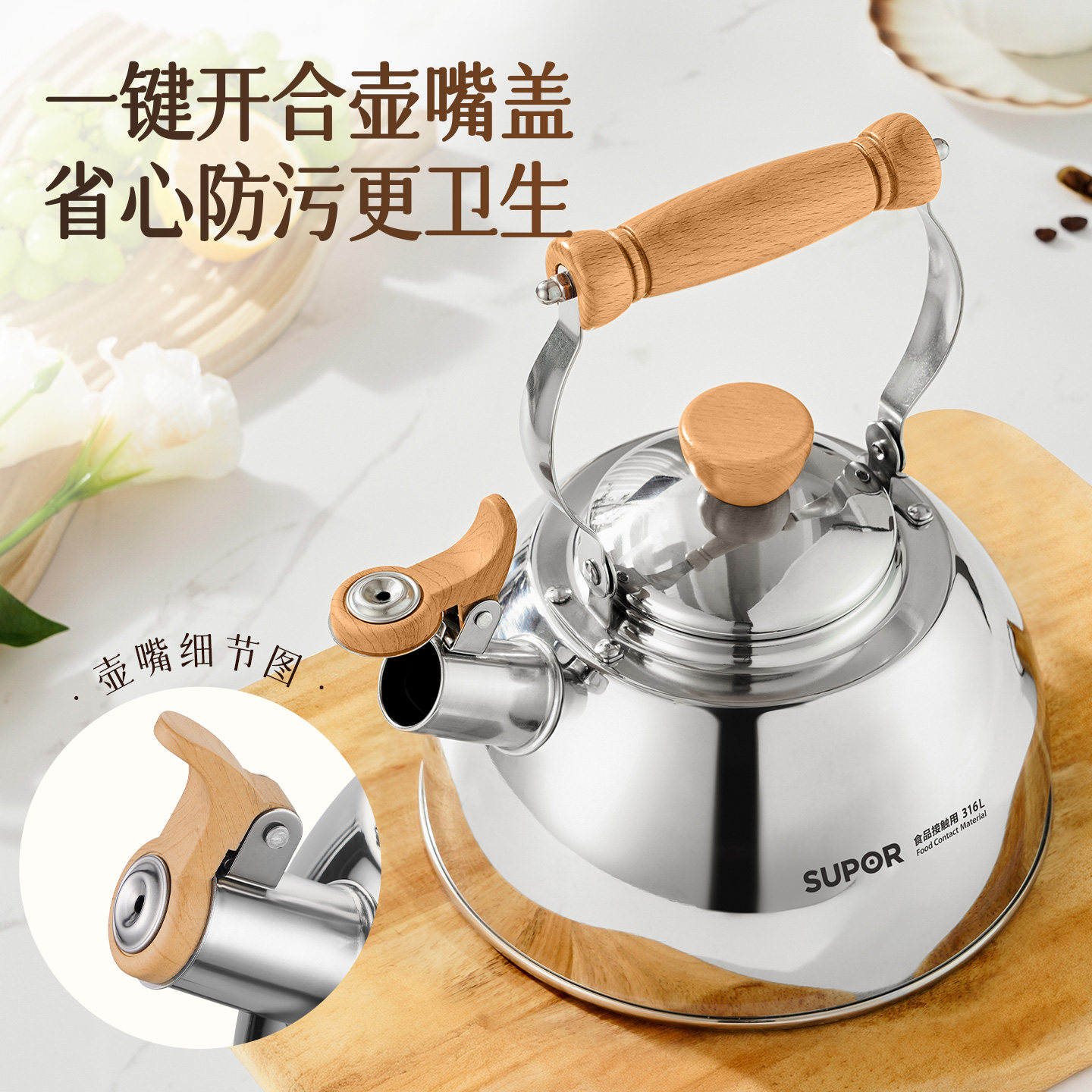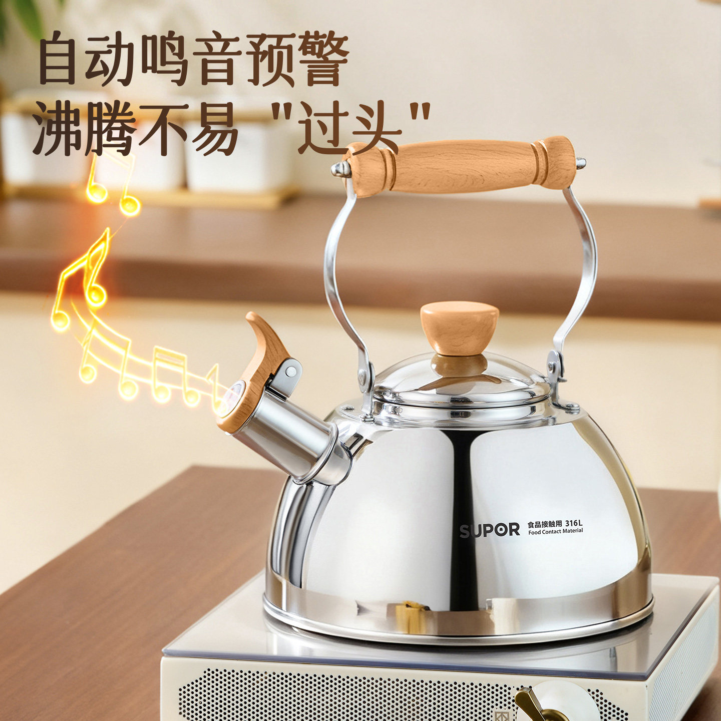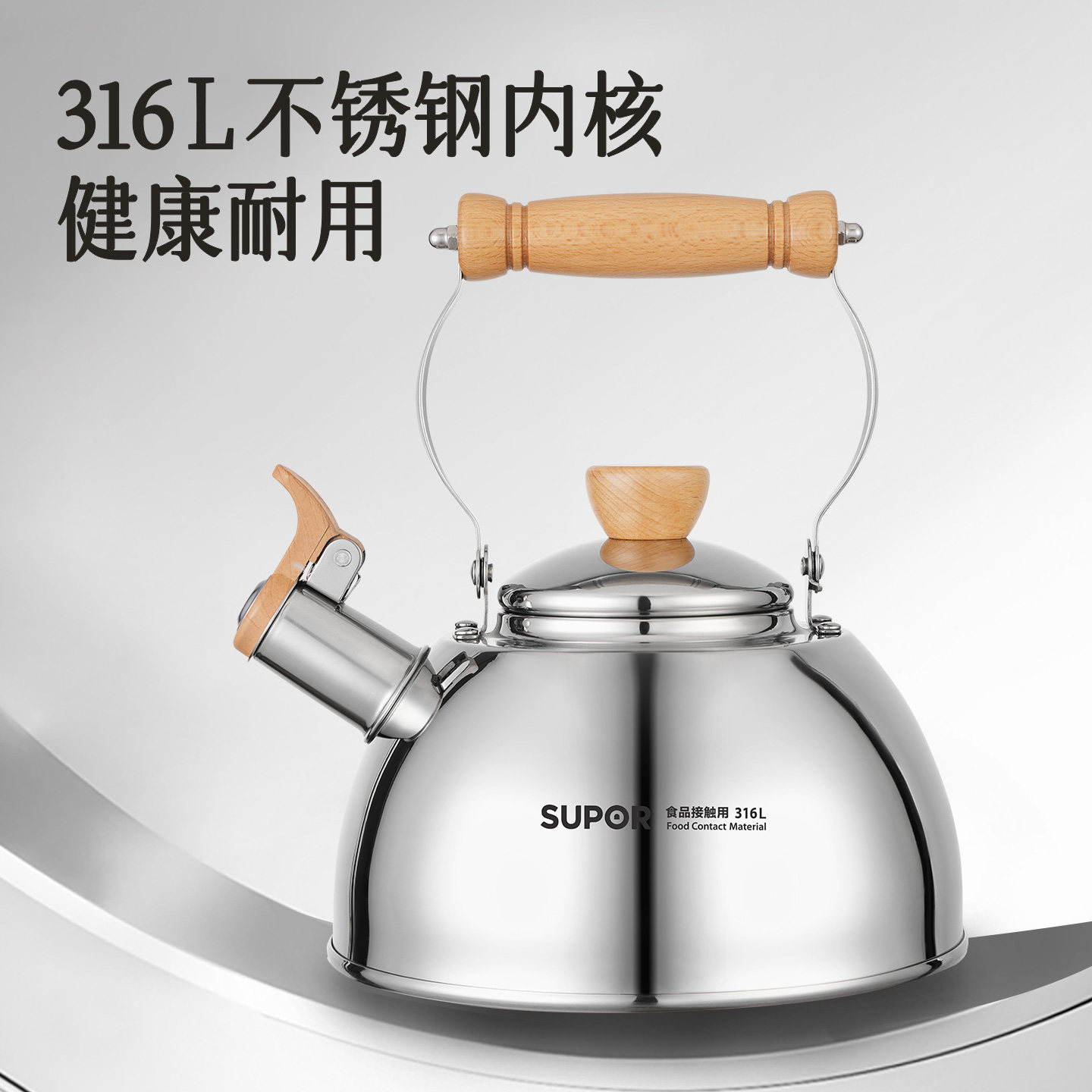 苏泊尔烧水壶316L不锈钢家用大容量水开鸣笛燃气明火电磁炉通用