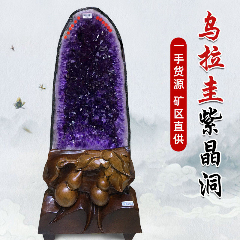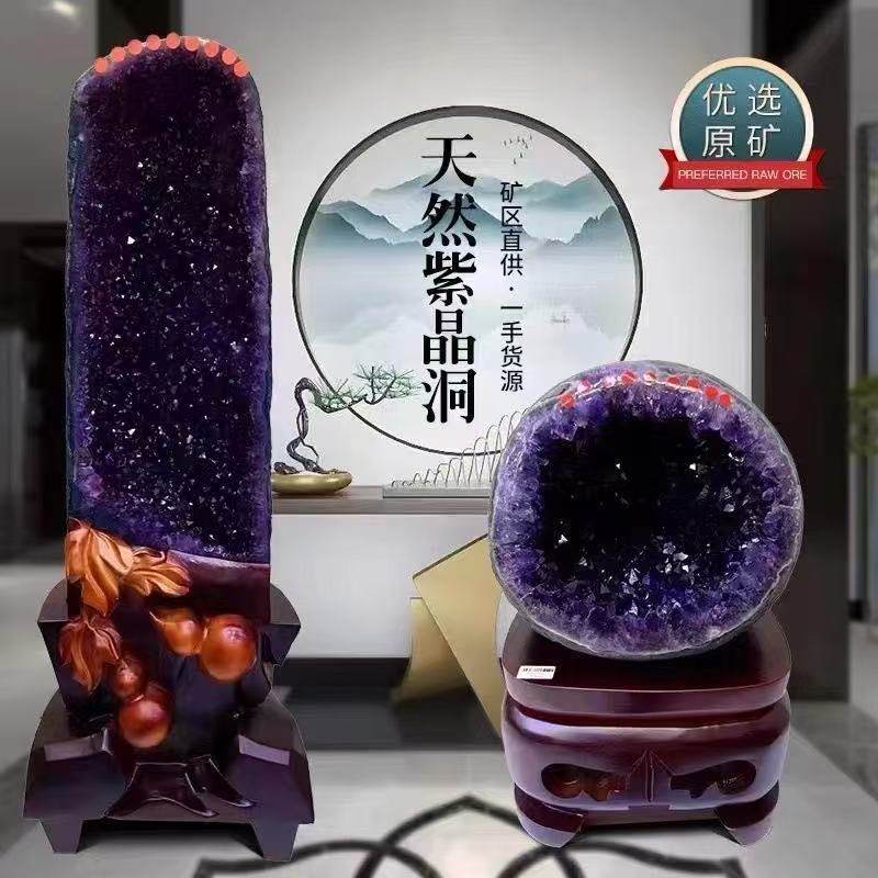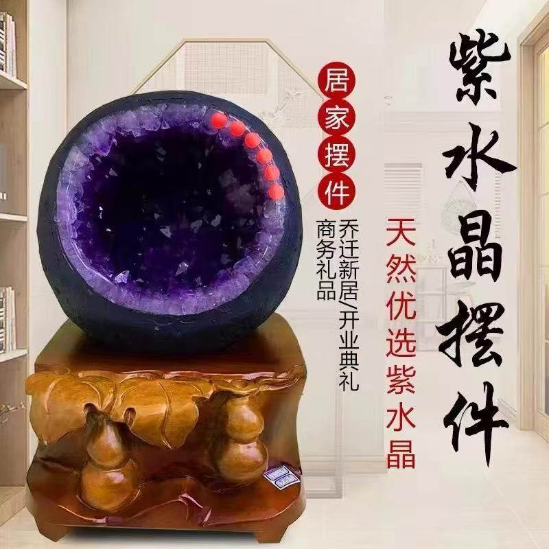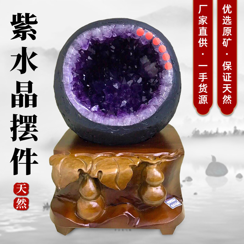 天然紫水晶洞摆件聚宝盆钱袋子消磁家居摆件高档礼紫晶洞底座招财