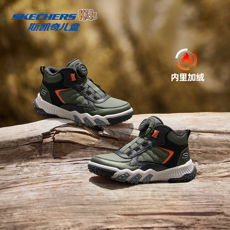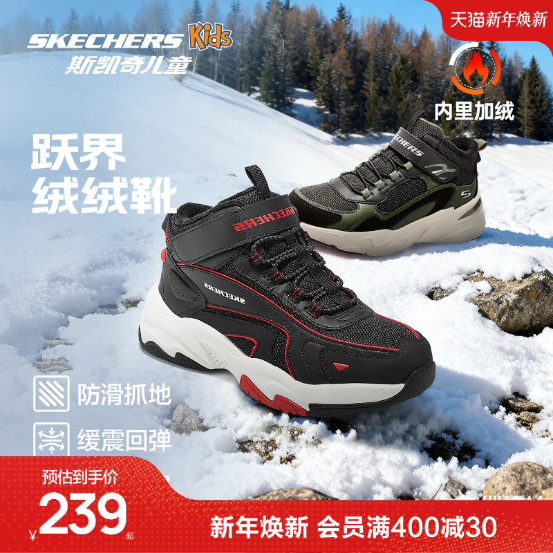 Skechers斯凯奇儿童跃界绒绒靴冬季户外童鞋男童保暖运动二棉鞋