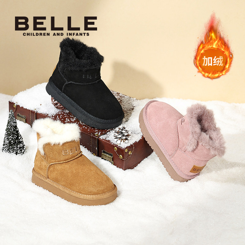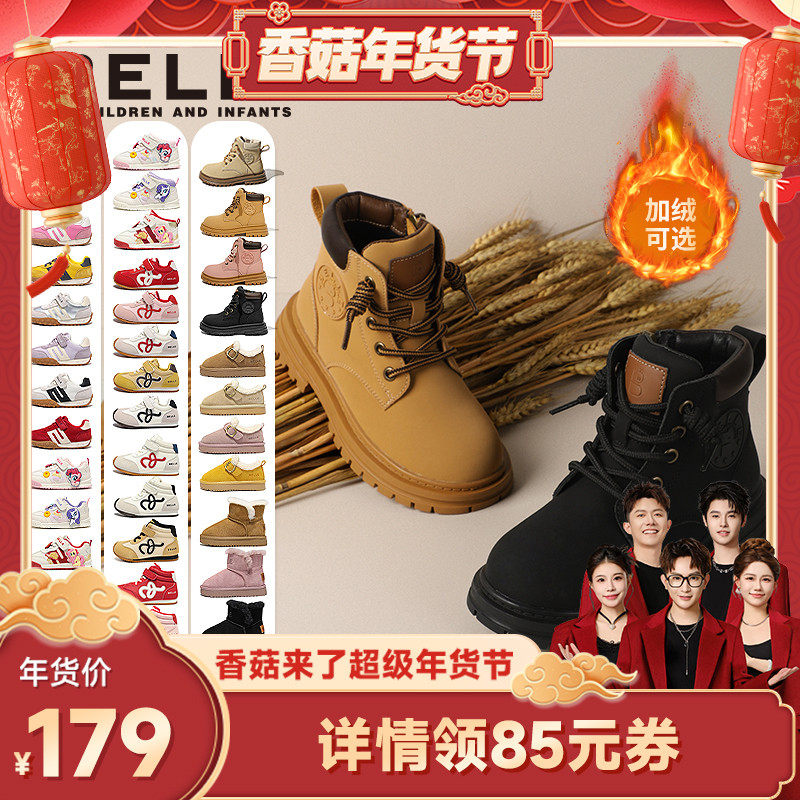 【香菇来了】百丽童鞋男女童高帮板鞋加绒保暖冬季新款儿童马丁靴