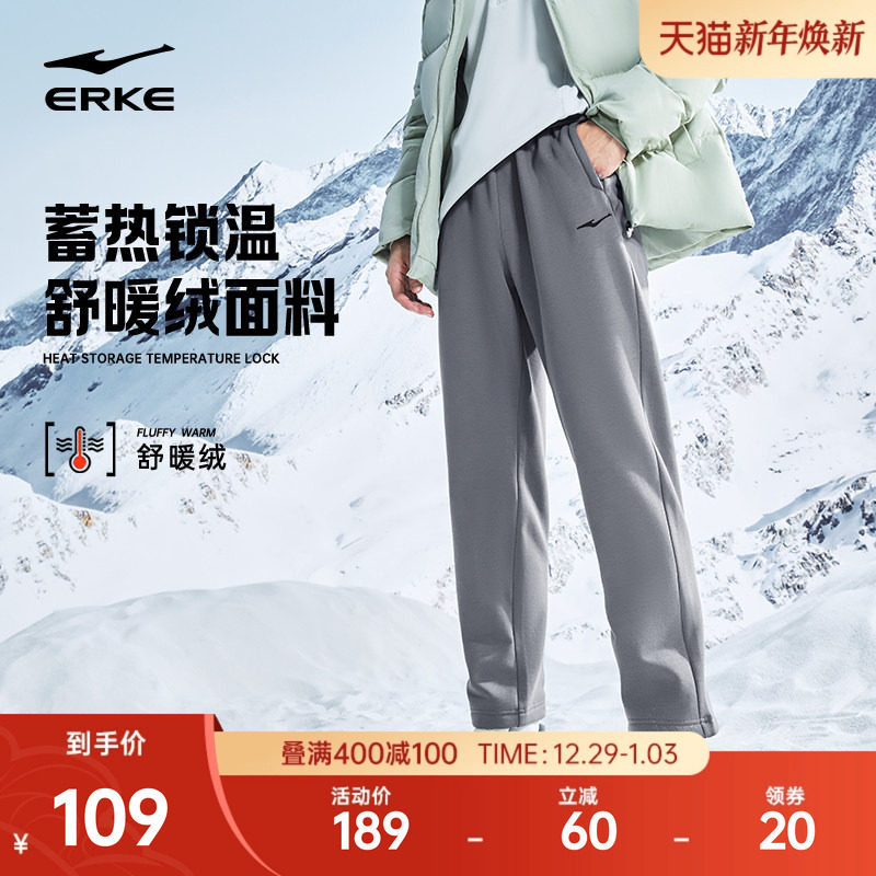 鸿星尔克运动裤男士冬季卫裤加绒男裤男生裤子直筒长裤加厚休闲裤
