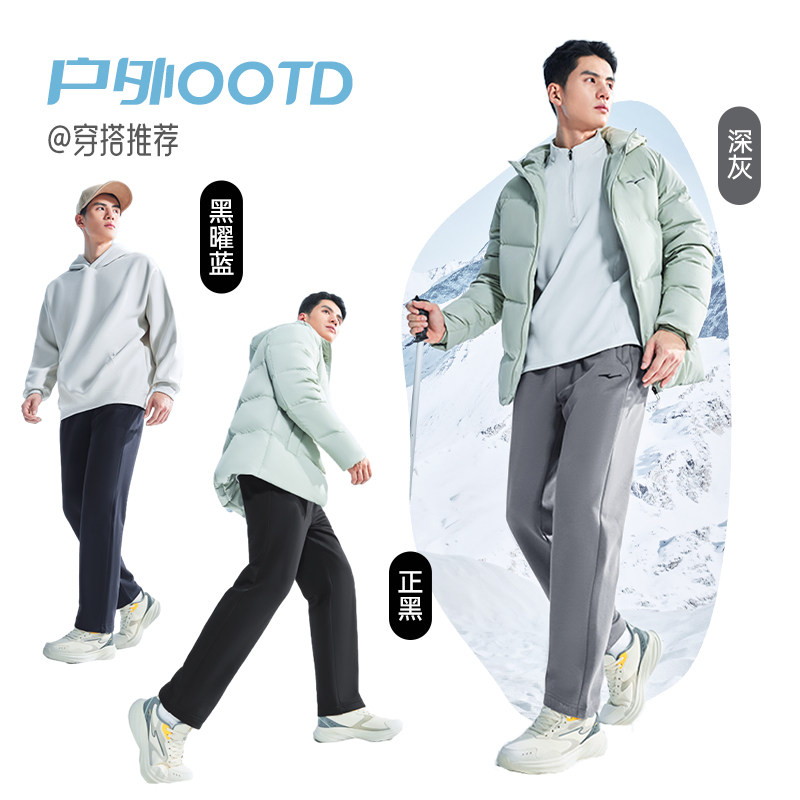 特步加绒卫裤男裤加厚秋冬款保暖缩脚裤直筒休闲裤百搭男子运动裤