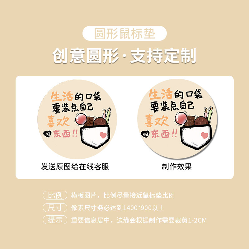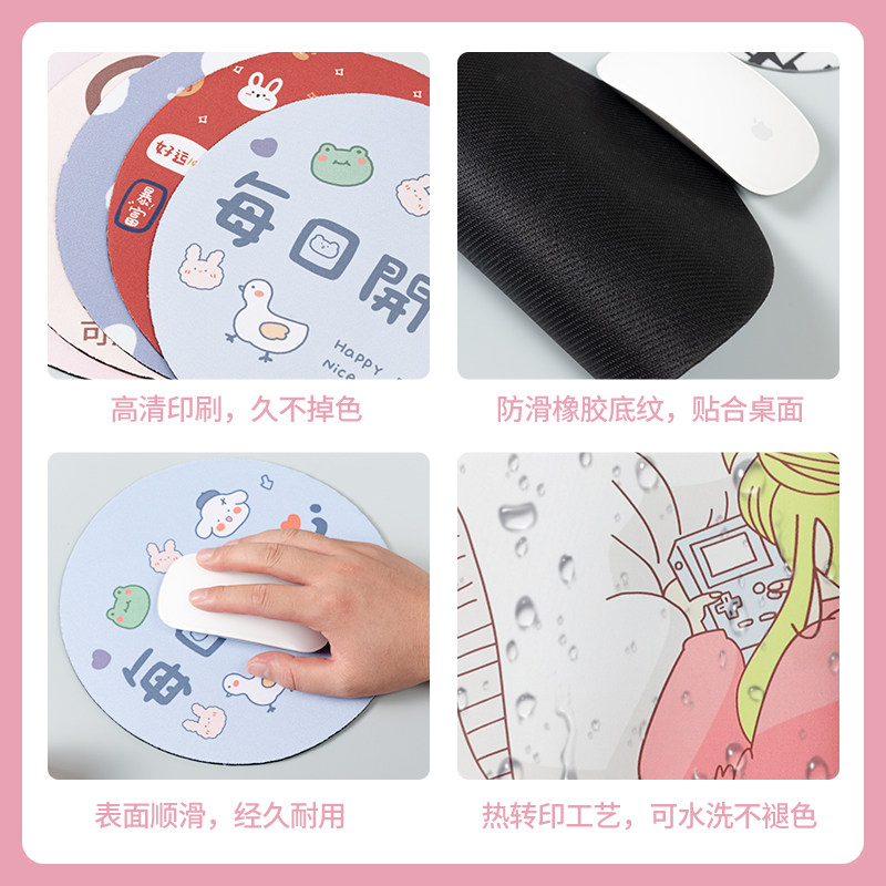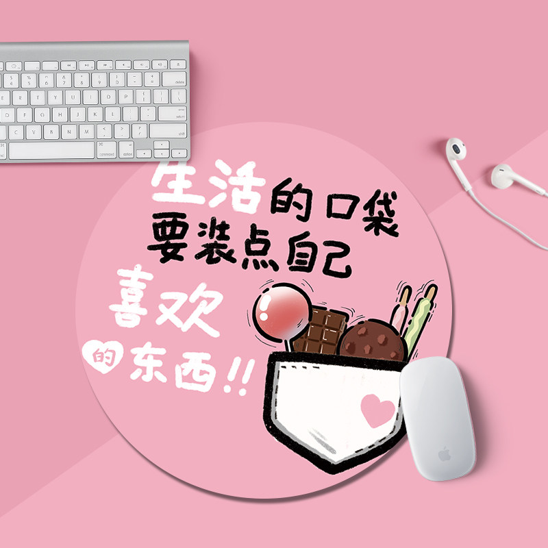 圆形鼠标垫男生小号便携电脑滑鼠垫办公简约创意卡通文字高颜值女