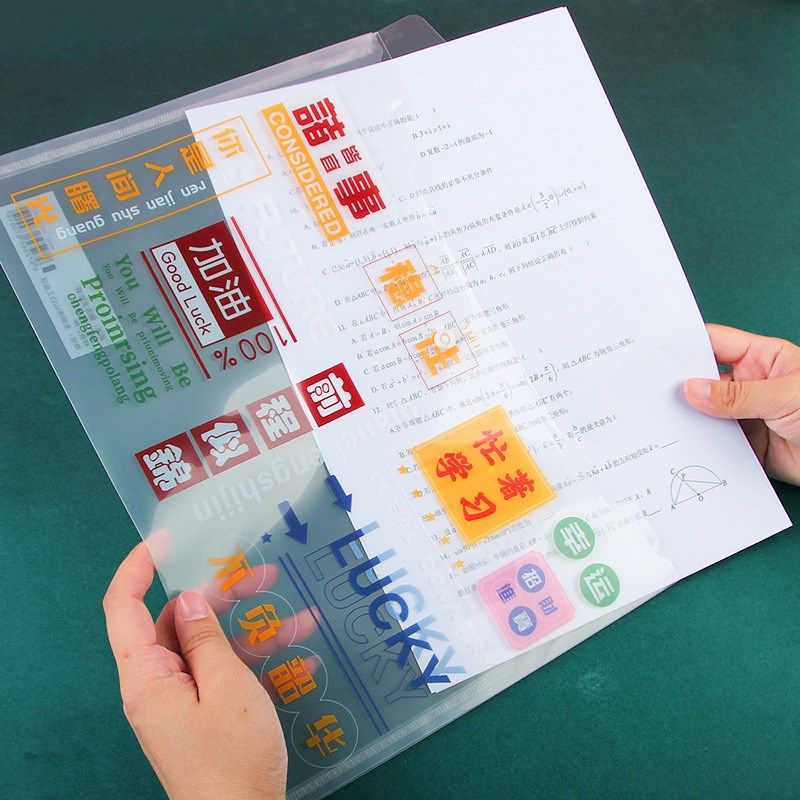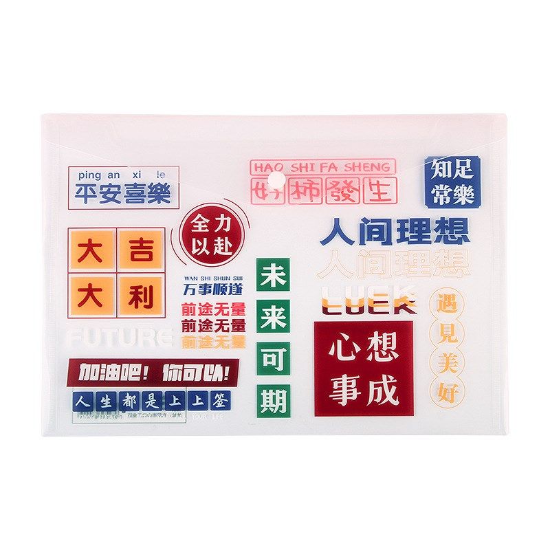 A4励志文字文件袋高颜值透明韩版实用大容量按扣款文件试卷收纳袋