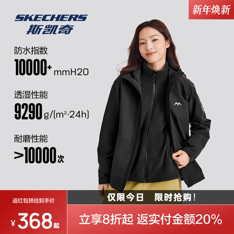 斯凯奇魔方冲锋衣冬季男女三合一保暖羽绒服户外抓绒内胆防水外套