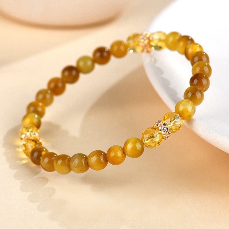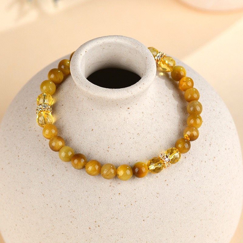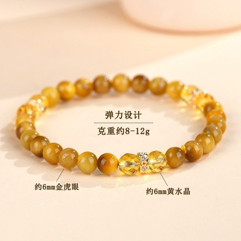 VZZS天然发彩金虎眼刻面黄水晶手链时尚原创女士爆款手串饰品礼物