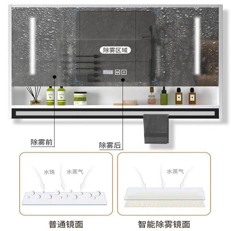 洗手间镜子带置物架实木智能浴室镜柜带灯除雾化妆室浴室镜挂墙式