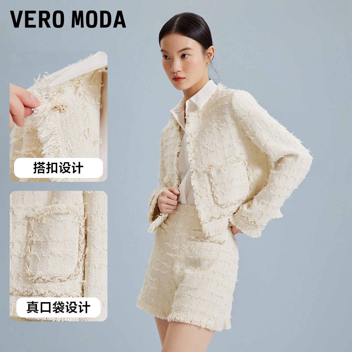 Vero Moda奥莱短外套女秋季新款小香风短款肌理感通勤上衣大衣
