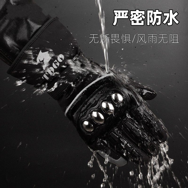 秋冬摩托车手套电加热保暖骑行防摔真皮骑车厚款防水机车骑士装备