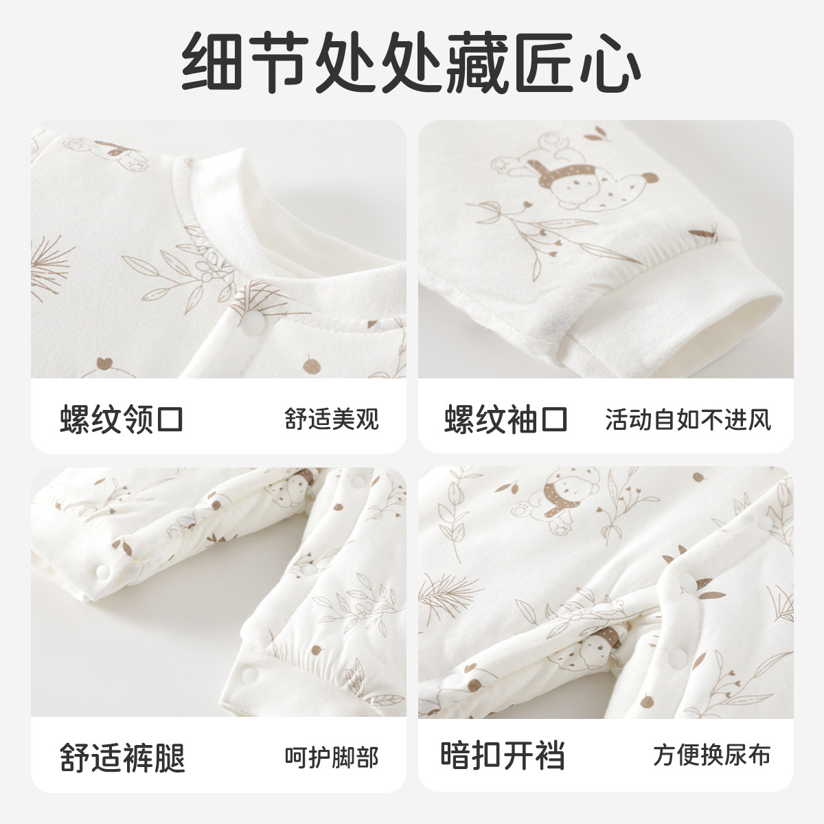 小猪大卫新生儿秋季保暖连体衣男女宝宝卡通印花中开夹棉爬服