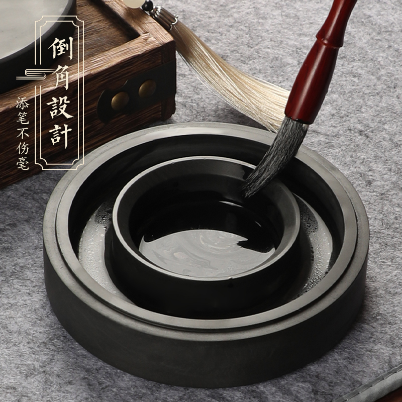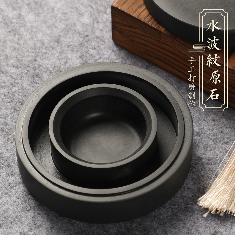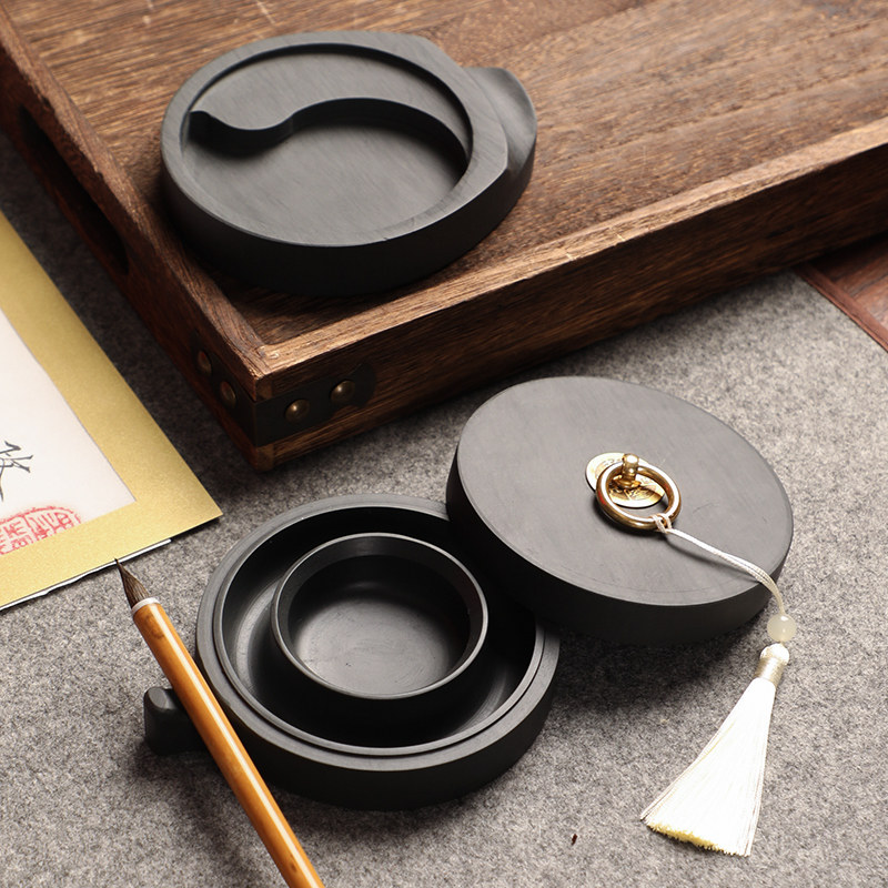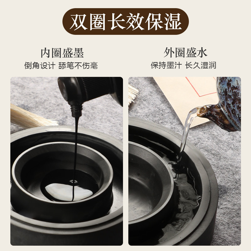 曹一阁全新升级火锅砚台双圈保湿防蒸发不干墨书法专用原石天然石料墨盒带盖初学专用练字可磨墨研墨歙砚墨池