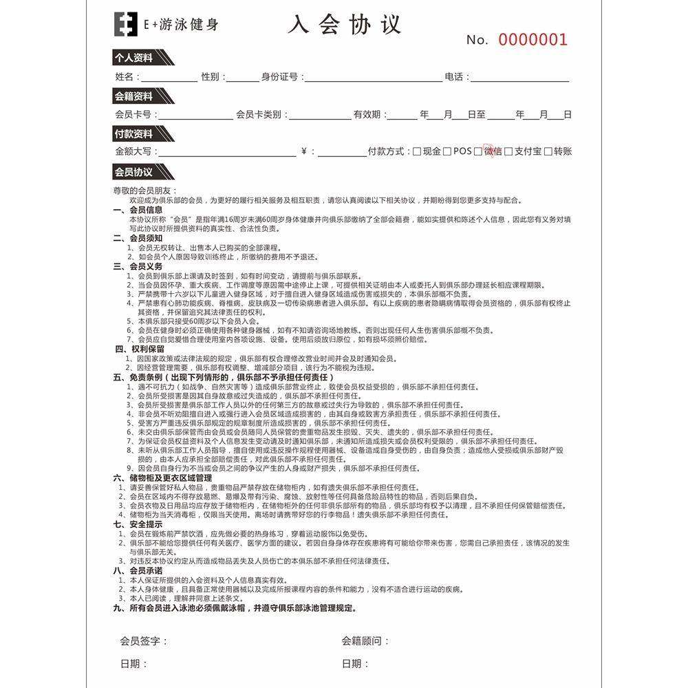 定做健身入会协议私教协议瑜伽会员合同减肥舞蹈培训协议课程收据