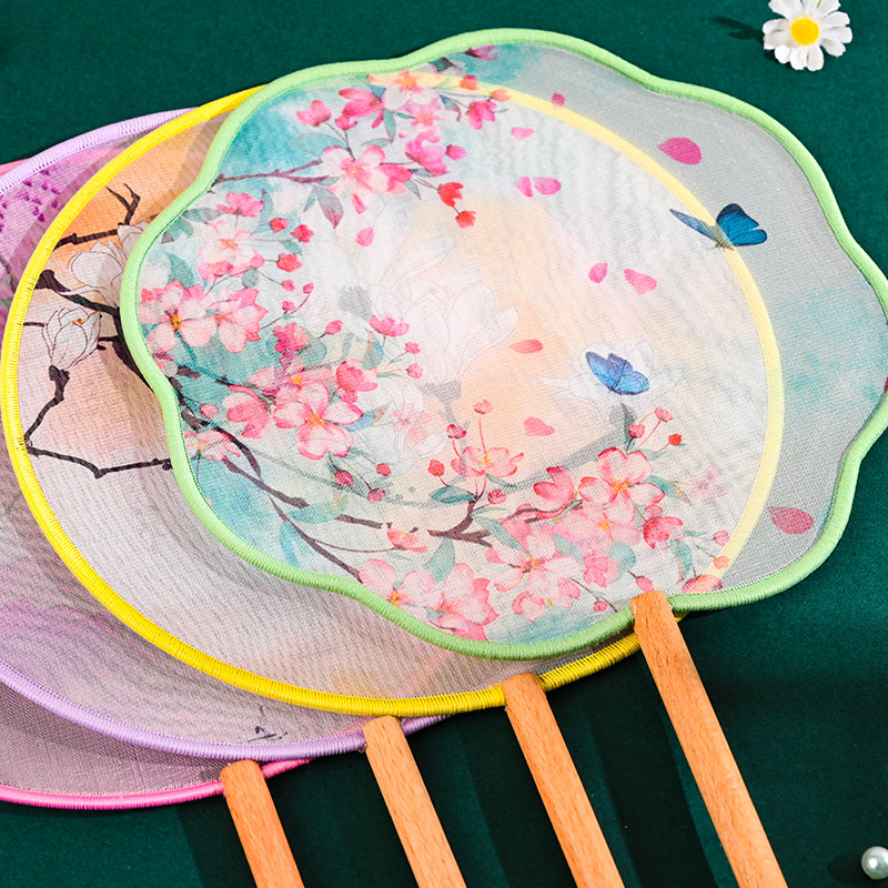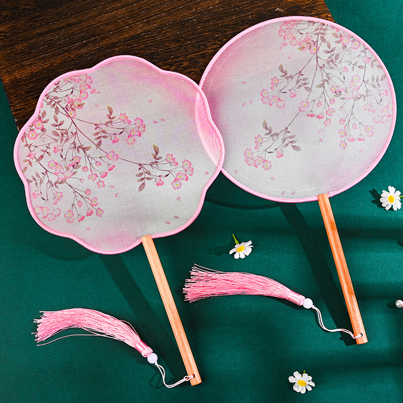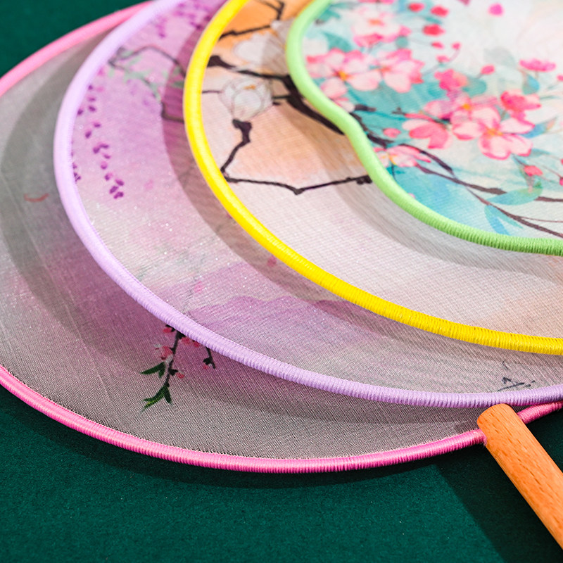 丝质半透团扇文艺宫扇舞蹈拍照通用日常儿童女汉服旗袍扇子古风