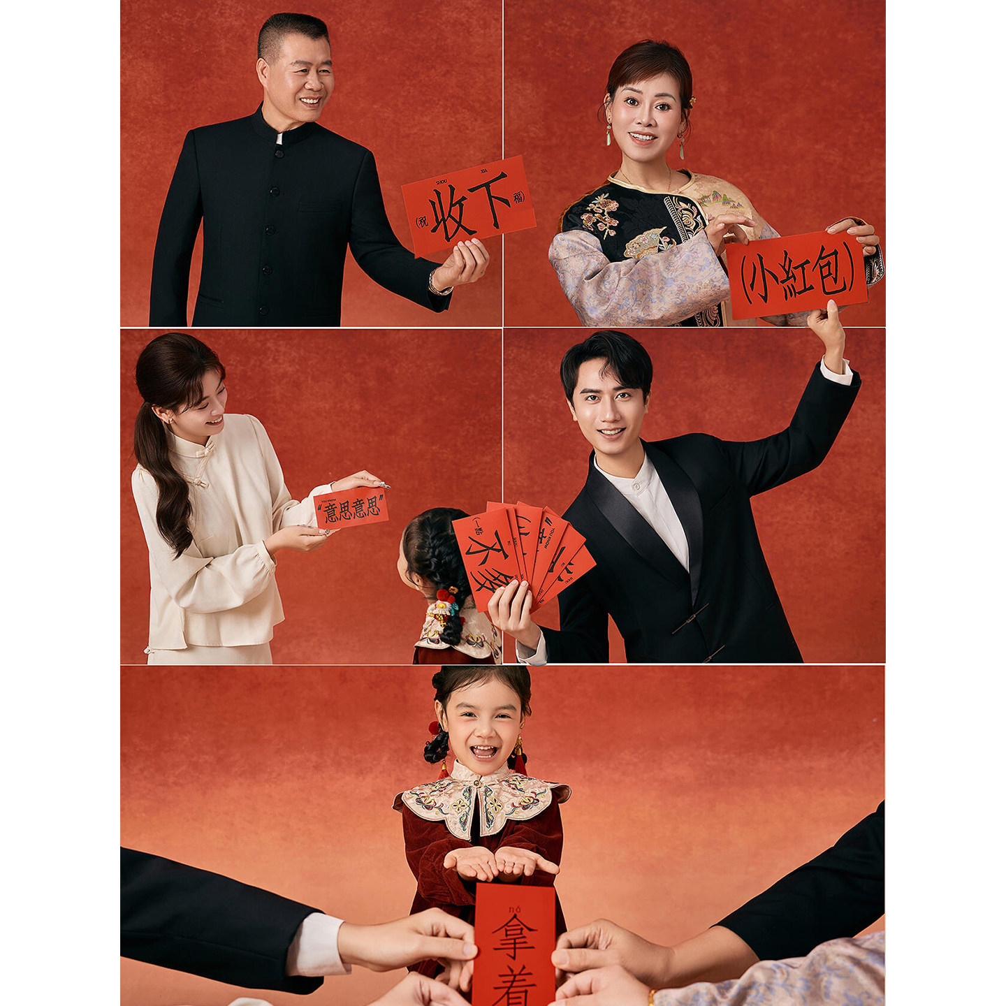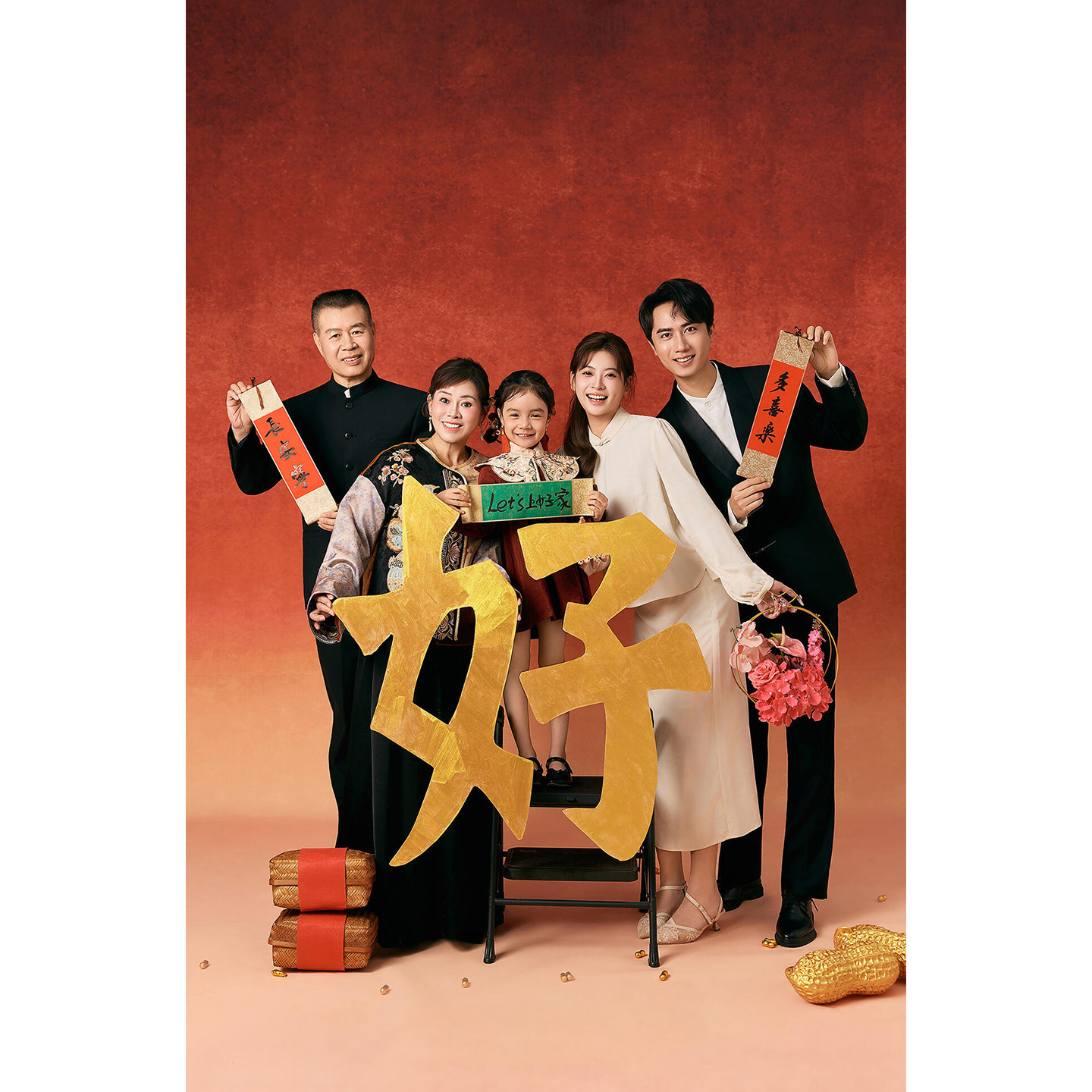 2026新年全家福摄影背景道具影楼拍照手拿字儿童拍照摆件金色花生