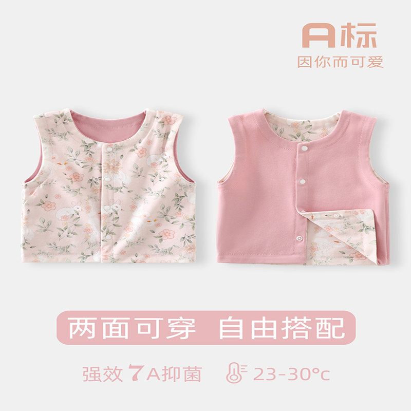 婧麒婴儿马甲春秋款双面可穿婴幼儿外穿宝宝春装纯棉A类坎肩背心