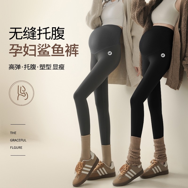 孕妇鲨鱼打底裤外穿瑜伽裤子秋冬装加绒加厚棉裤秋装保暖不勒肚子