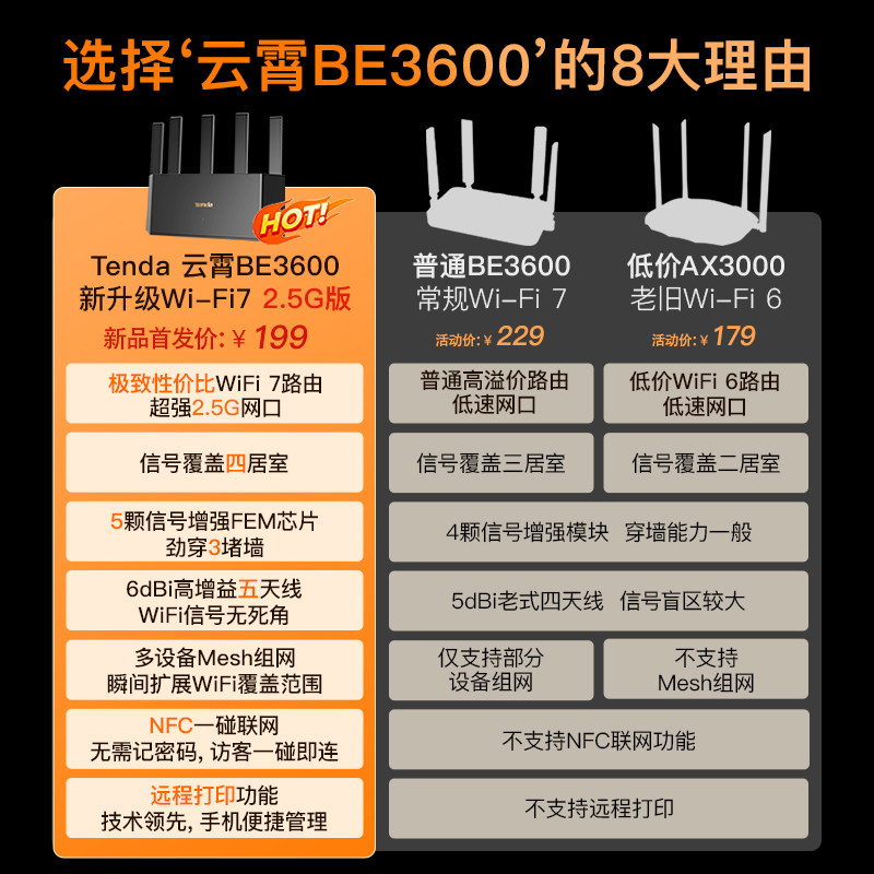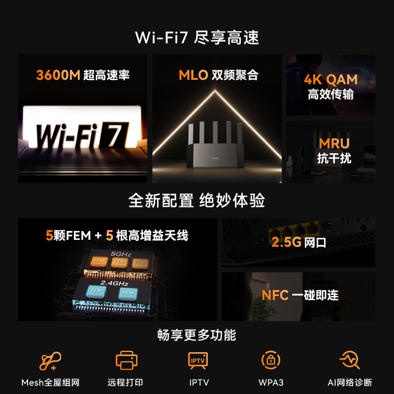 Tenda腾达路由器WiFi7家用高速千兆BE3L双频无线穿墙王3600Mbps全屋覆盖大户型移动电信光纤热销榜2025新款