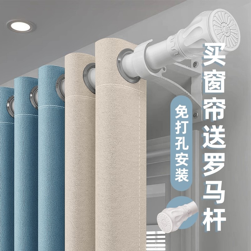 窗帘杆罗马杆全遮光全套带杆免打孔安装2025新款卧室轻奢一整套