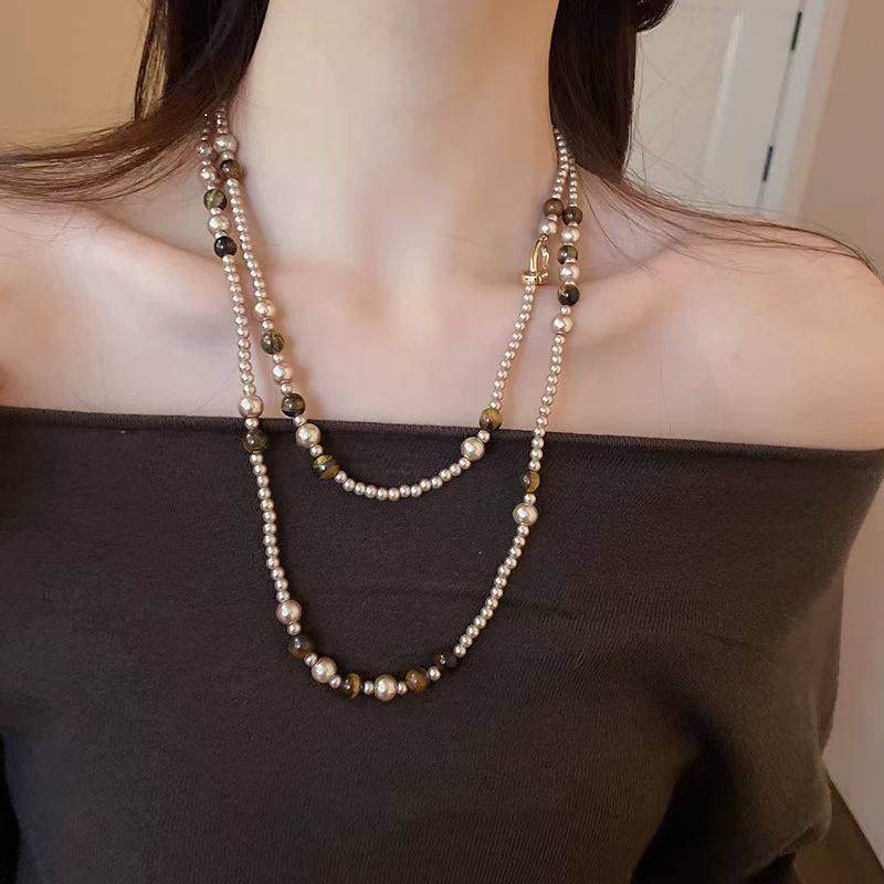 美拉德虎眼石长款毛衣链女款2025新款轻奢高级感项链秋冬装饰配饰
