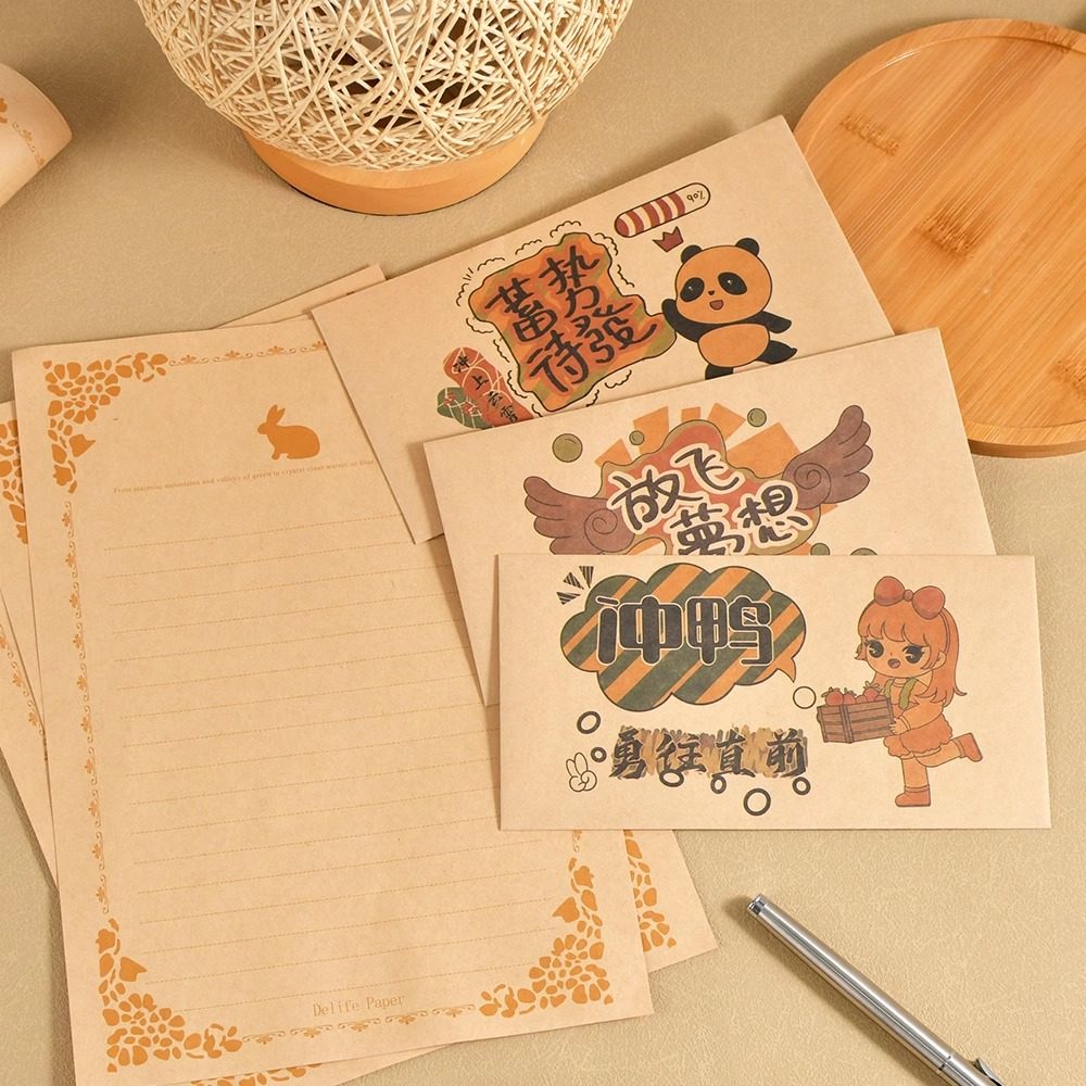 信封信纸套装牛皮纸加厚高级感高三成人礼一封信手写信复古牛皮信封袋中高考学生毕业书信纸可爱卡通空白定制