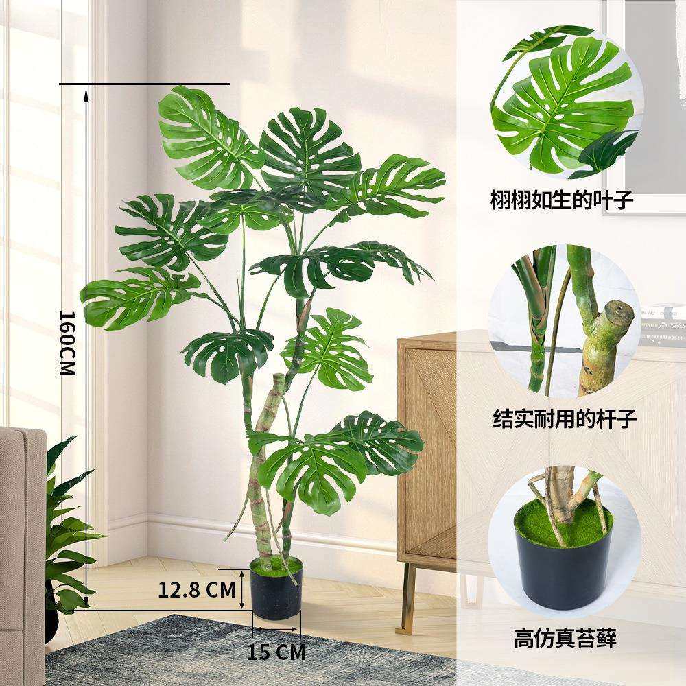 跨境160cm仿真绿植龟背竹客厅办公室室内植物盆栽摆件装饰龟背树